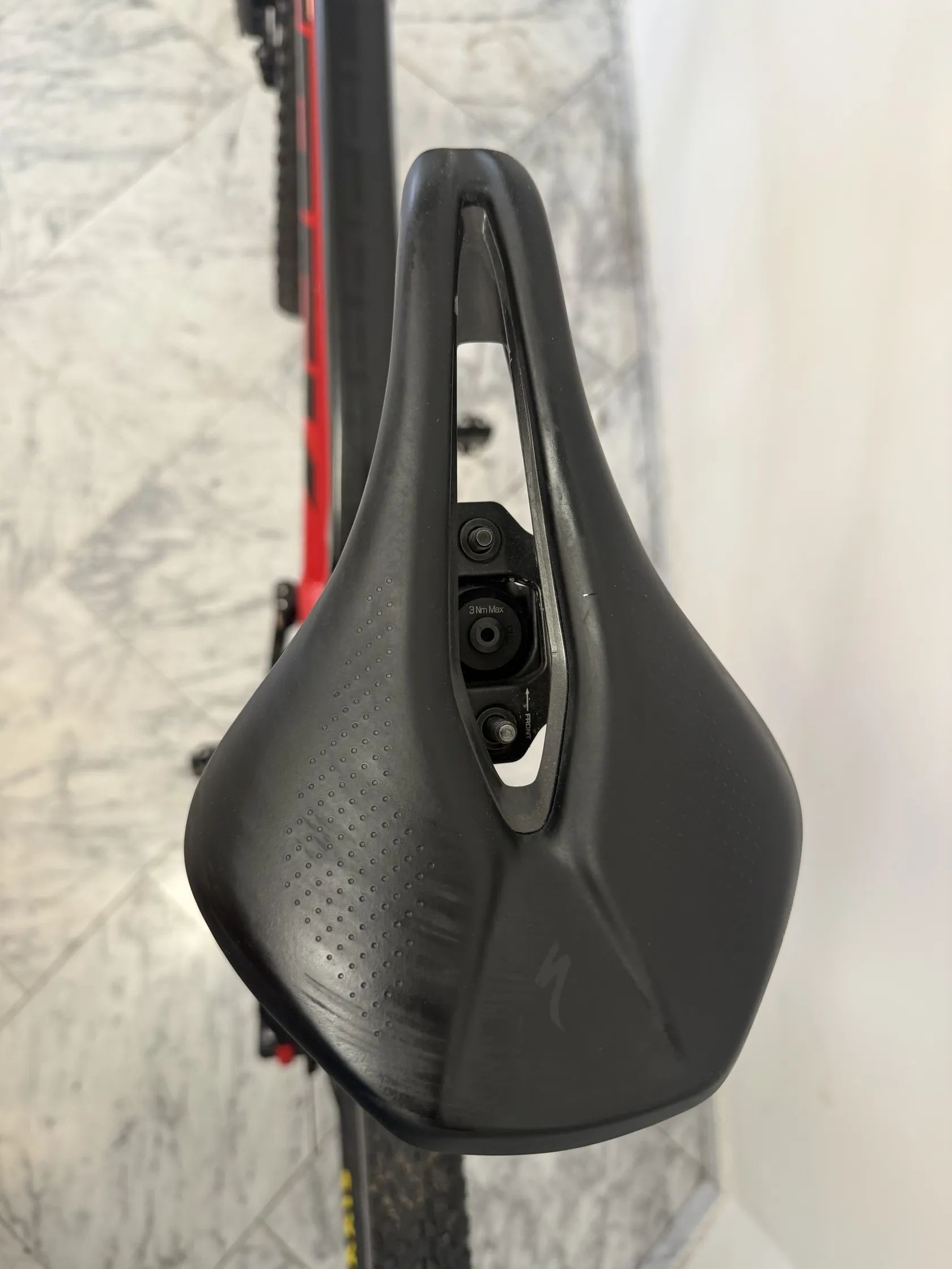 Sedlo: Specialized Power Comp 143 mm (+ původní Bontrager) – sportovní, krátké sedlo zaměřené na efektivní posed.