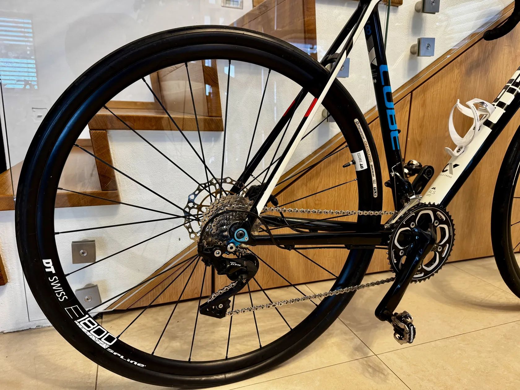 rám: Cube Cross Race velikost: 58 osazení: Shimano 105 kola: TOP kola DT SWISS E1800 Spline pláště: Panaracer Gravelking – bezdušové provedení