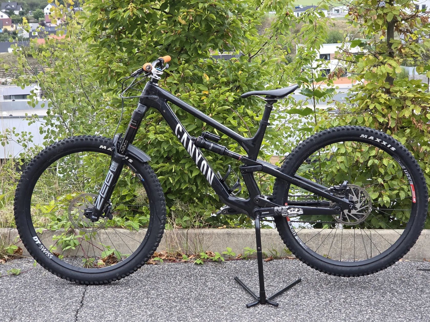 ---Osazení--- Vidlice: Rockshox ZEB Select RC 170 mm Tlumič: Rockshox Super Deluxe Select+ 250x70 mm Brzdy: Zcela nové TRP Slate T4 + Sram Centerline 200 mm Kliky: Zcela nové Sram GX Eagle (nejsou na fotografii) s novým převodníkem Zapletená kola: DT Swiss HX1501 Teleskopická sedlovka: Kind Shock 30.9 mm, zdvih 200 mm Představec: Canyon G5 40mm Řidítka: Canyon G5 31.8mm Pohon: Sram GX 1x11, 10-42 11sp Sedlo: Fizik Swoop