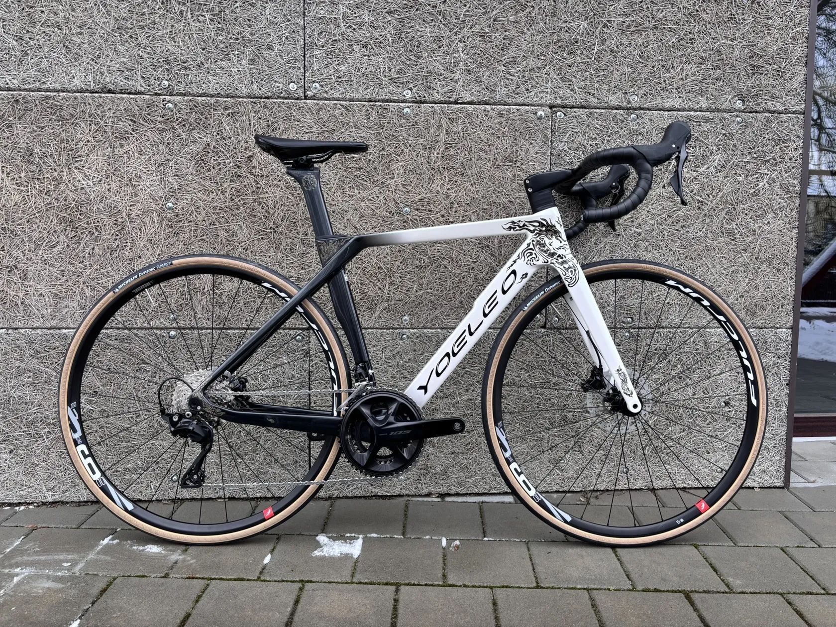 Prodám silniční kolo Yoeleo R12 na kompletní sadě Shimano 1050 2 x 12 speed, zapletené kola jsou Fulcrum Racing 900DB a pláštích Michelin Dynamic Classic Translucent 700x28C