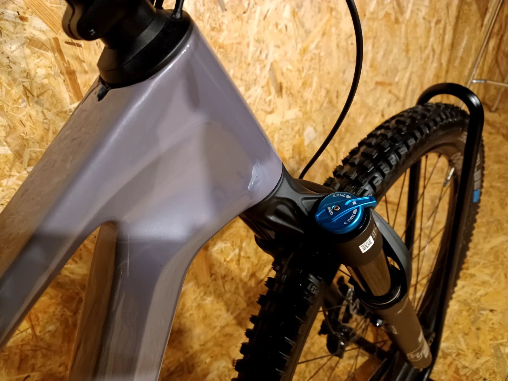 Karbonový rám – lehký, tuhost pro efektivní šlapání, zároveň komfort v terénu