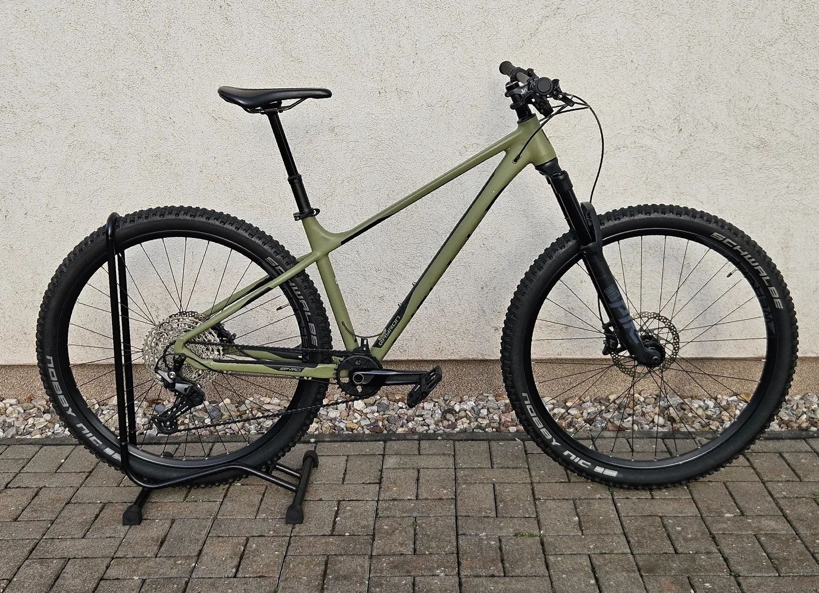 Oproti původní konfiguraci vyměněn: - pohon na 1x11 (skoro nové kliky Deore 30z. 165mm, kazeta Deore 11-51z, zcela nový řetěz KMC X11EL) - vidlice RockShox Pike Select 140mm - teleskopická sedlovka OneUp V2 150mm