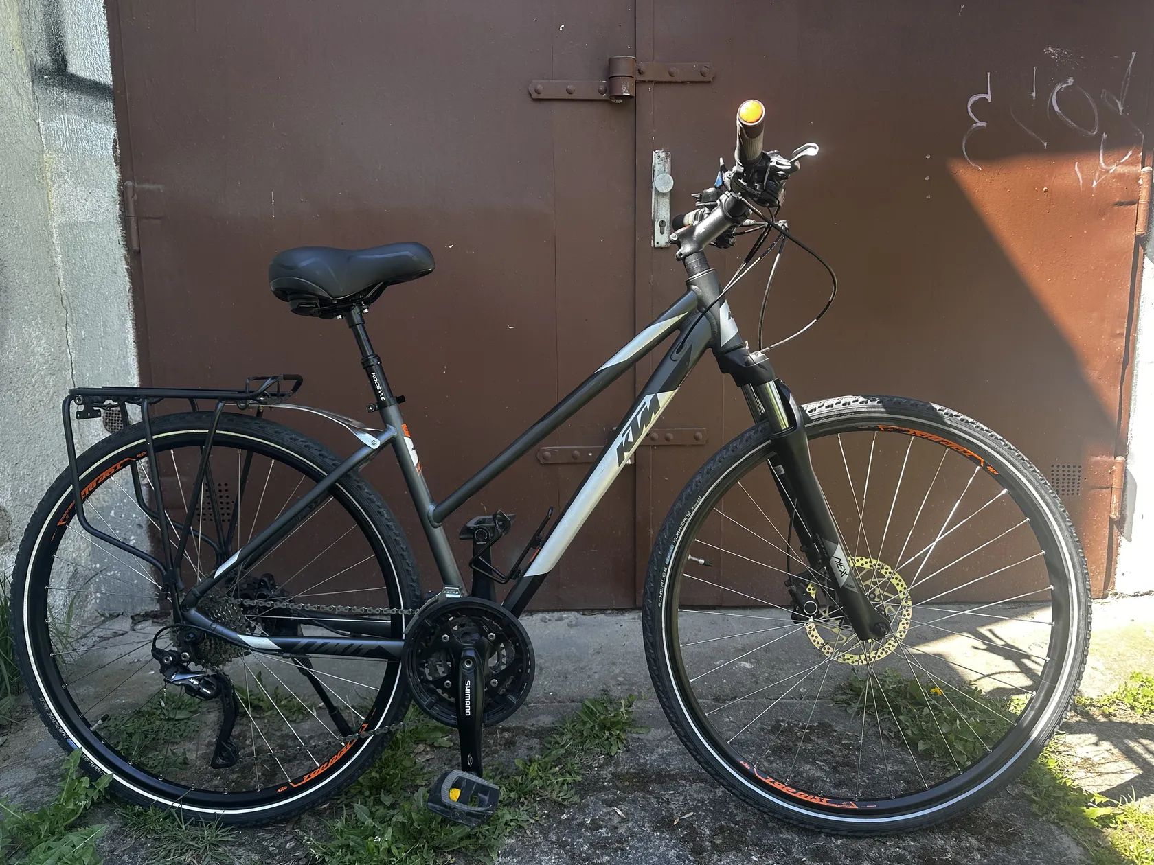 Dámské kolo KTM v pěkném stavu málo jeté ,velikost rámu 18, kol 28, trekové pláště. Na sedlové trubce je uveden rozměr 43 velikost M. Hydraulické brzdy Shimano. Ražení Shimano XT. Odpružena přední vidlice s uzamykanim s řídítek. Odpružena sedlovka + gelové sedlo.