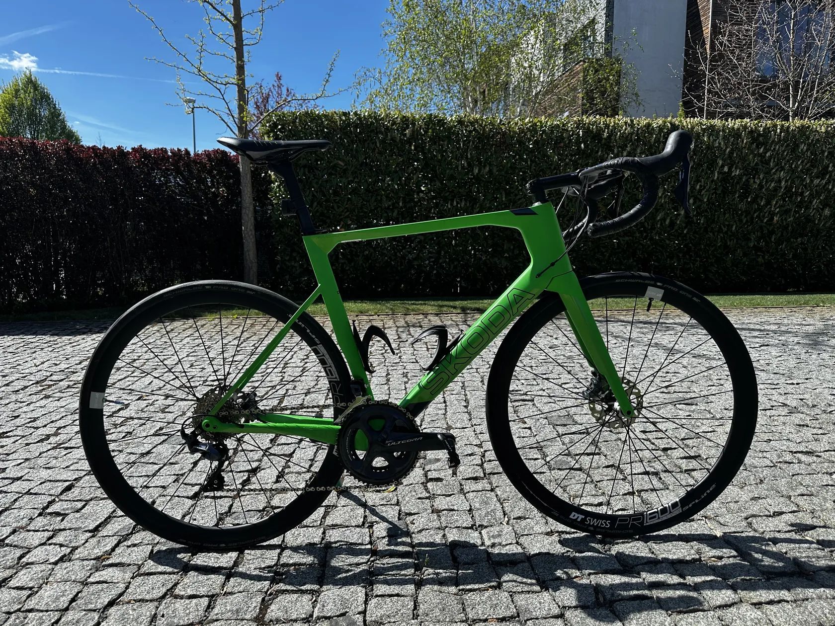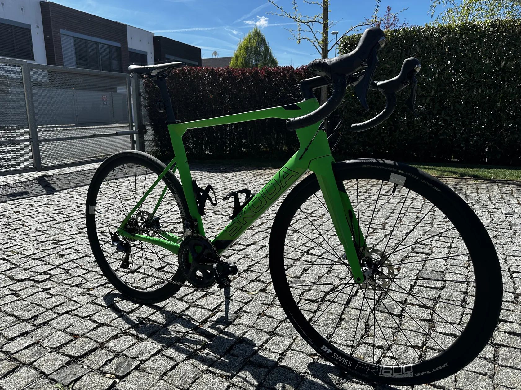 Rám: karbonový, velikost 56 (L) Kola: DT Swiss PR1600 Spline, hliníková Pláště: Schwalbe Pro One Tubeless Brzdy: Shimano Ultegra 8000 kotouče 140 mm Přesmykač a přehazovačka: Shimano Ultegra FC-R8000, 52/36 zubů, 11 rychlostí Kliky: Shimano Ultegra, 175 mm Pedály: Look Keo 2 Max Sedlo: Fizik Antares Představec: 120 mm, OneRace Náboje: DT Swiss Dva košíky: Elite Váha: 7,5 kg