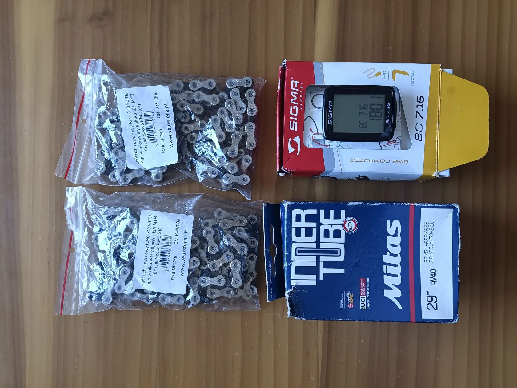 Ke kolu je ještě: 2 x řetěz KMCX10 Cyklocomputer Sigma BC 7.16 1 x duše Mitas Brašna SportArsenal + brašna pod sedlo Pedály Shimano PD-M 520 nebo obyč viz. foto