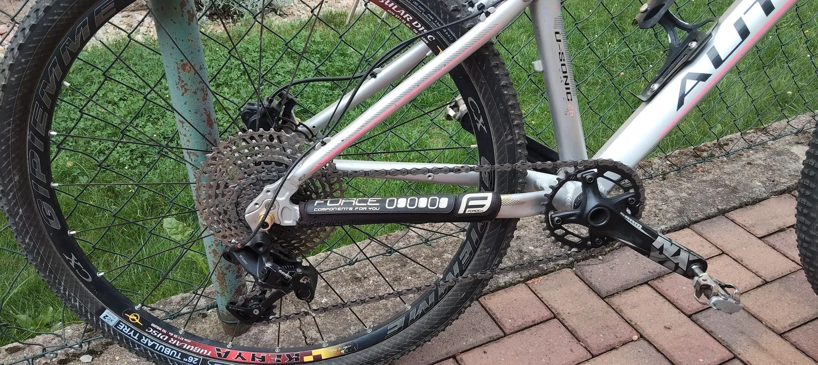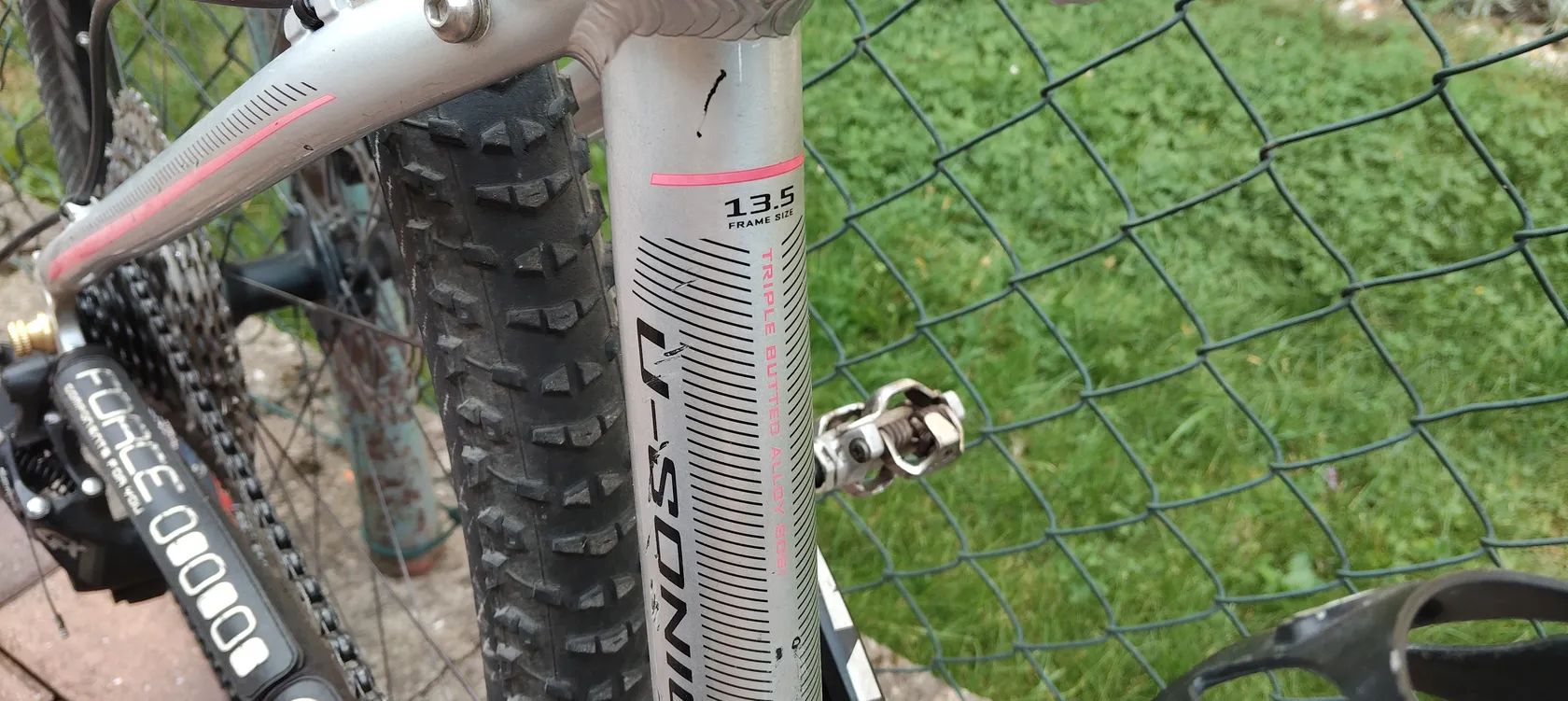 Rám z hliníku, doplněný o karbonovou vidlici – zaměřeno na nízkou hmotnost a tuhost