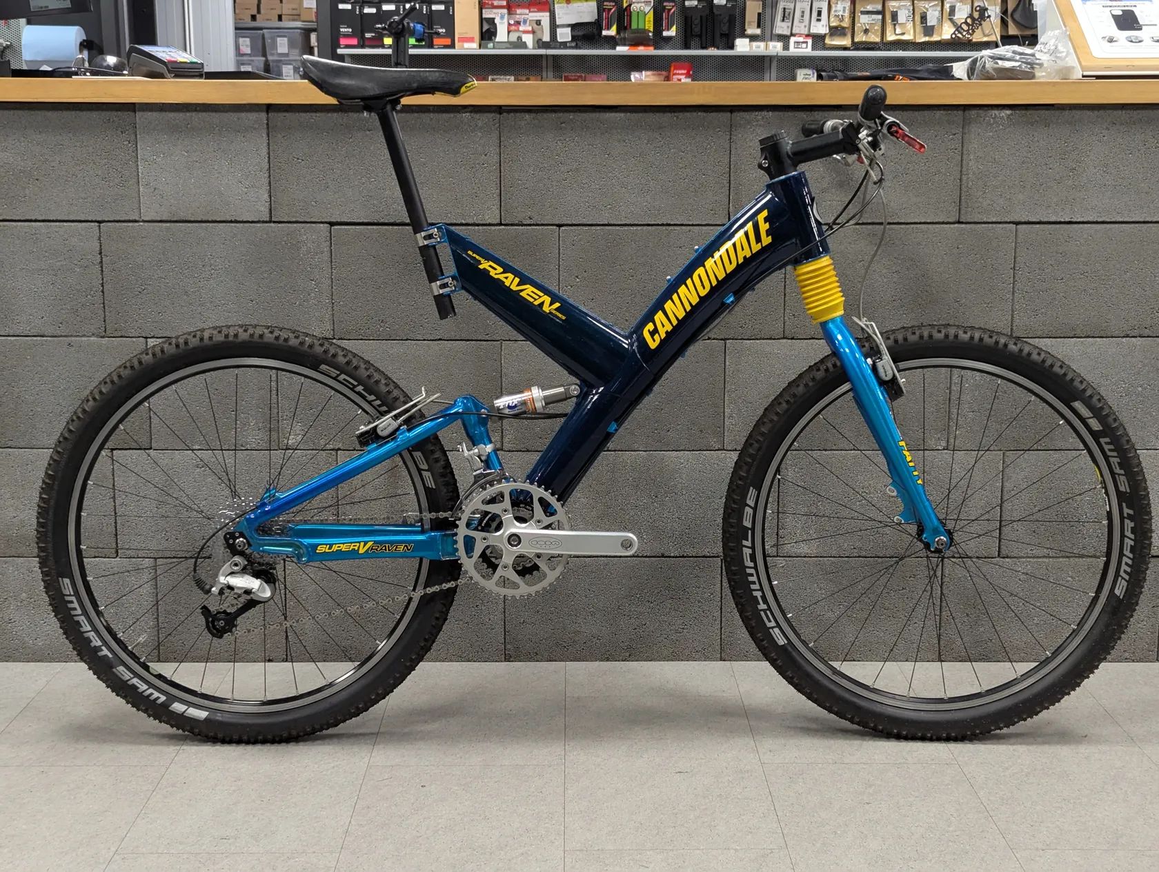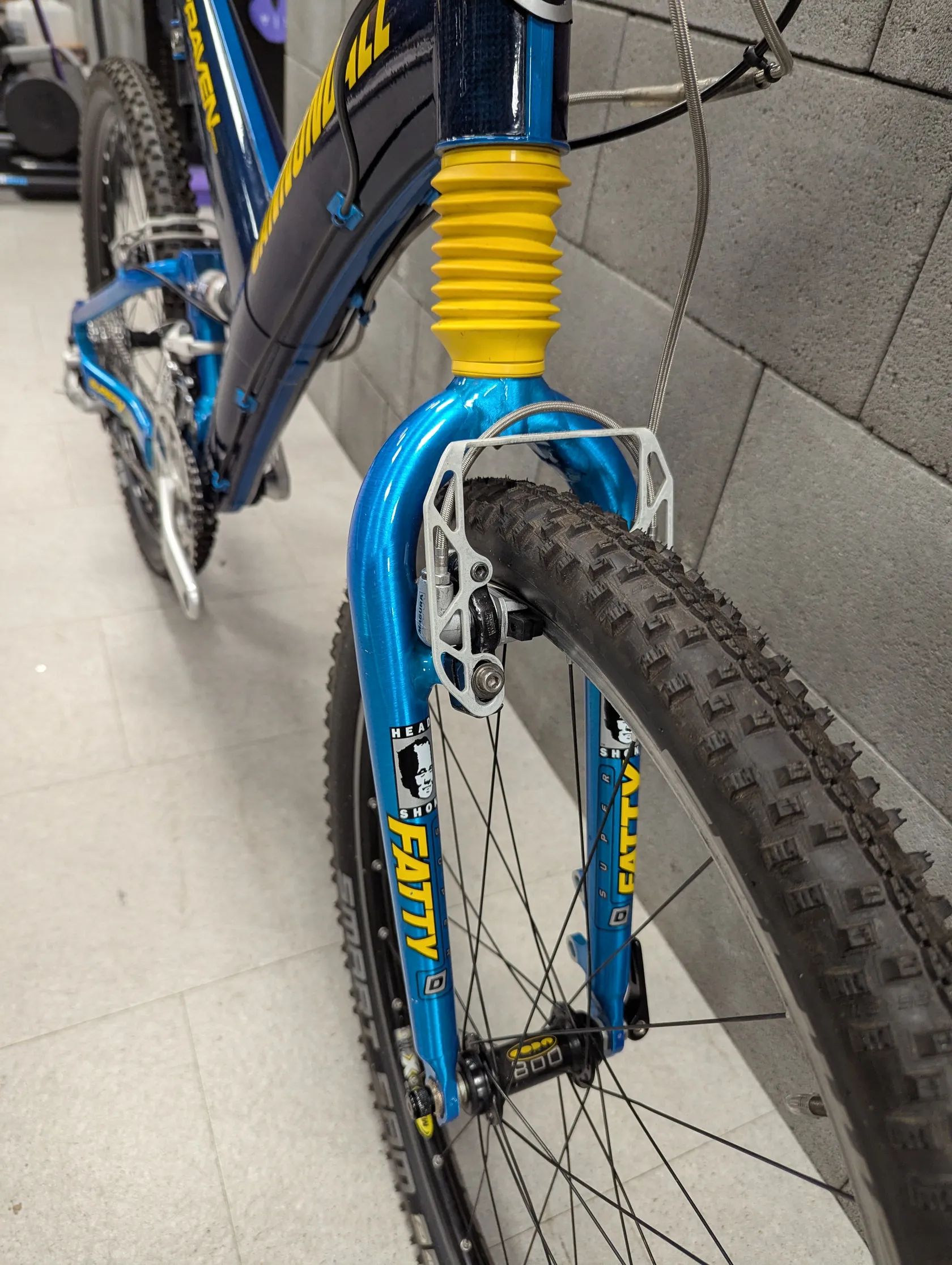 Prodám Cannondale Raven 1000 ve velikosti L, rok výroby 1999. Rám s vidlicí jsou ve skvělém stavu, viz fotky, jediný šrám má rám na levé straně u hlavové trubky. Kompletně zrepasovaný tlumič Fox Vanilla Float (všechny těsnění i olej) i vidlice Fatty D (všechny těsnění, olej i dráhy v teleskopu). Vidlice je možno uzamčít. Přehazovačka Shimano XT, přesmyk XT, řazení XT, kliky Cannondale CODA Tarantula, brzdy ráfkové hydraulické Magura HS, zapletená kola na nábojích CODA 800, ráfky Mavic, dráty DT Swiss, sedlo Turbo. Celé kolo bylo komplet rozebrané, vyčištěné a namazané co bylo třeba, nové bovdeny a lanka. Servis s repasemi za cca 10000 Kč. Budoucí servis vidlice i tlumiče je možný u 4 KLUCI OD KOL.