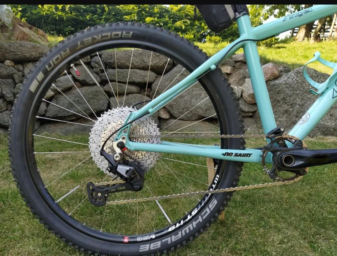 Prodám dětské kolo No Saint Angel, individuální stavba 1x12, hmotnost včetně pedálů 9,8kg. Funkční vidlice Rock Shox Sid dual air i pod lehkým děckem. Bezdušové ráfky, páska nalepena, aktuálně nasazené TPU duše. Dcera na něm jezdila od 130cm do 155cm. Kliky mají nový lak! Více informací e-mailem.