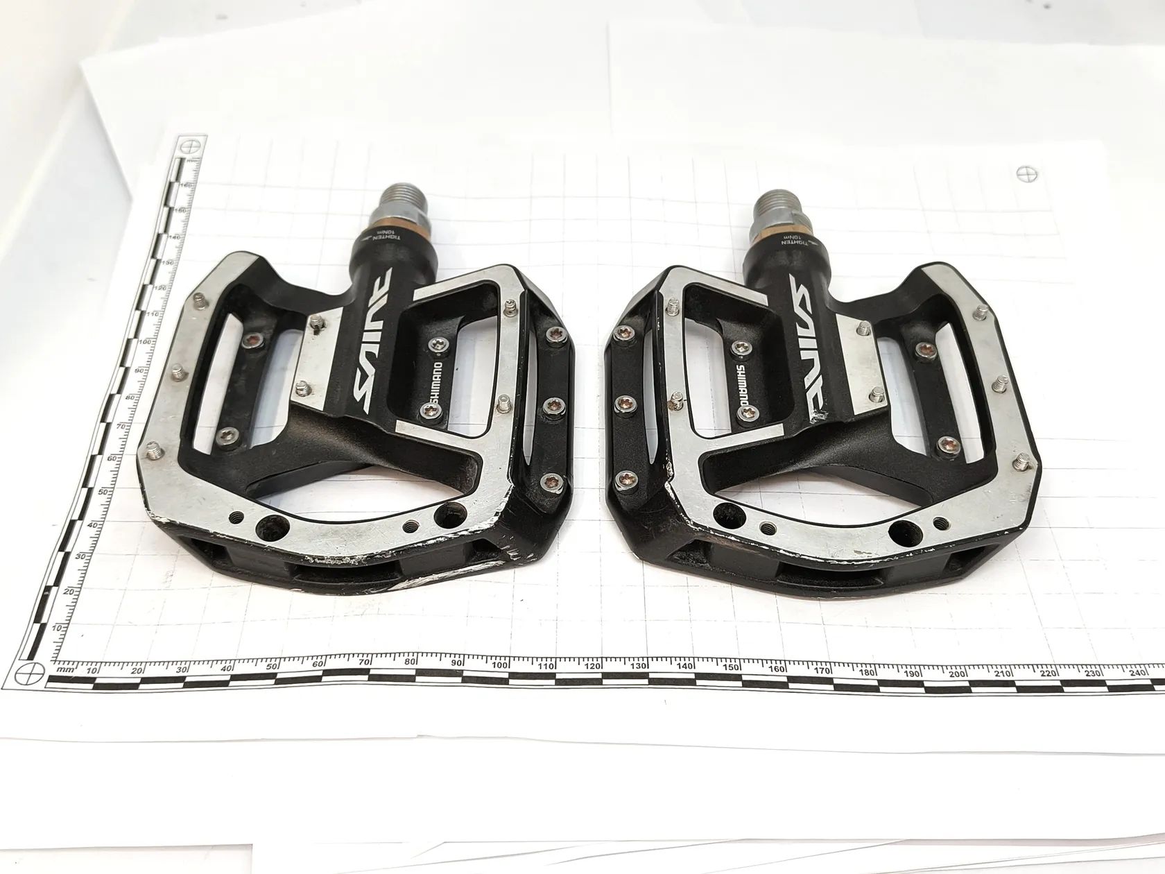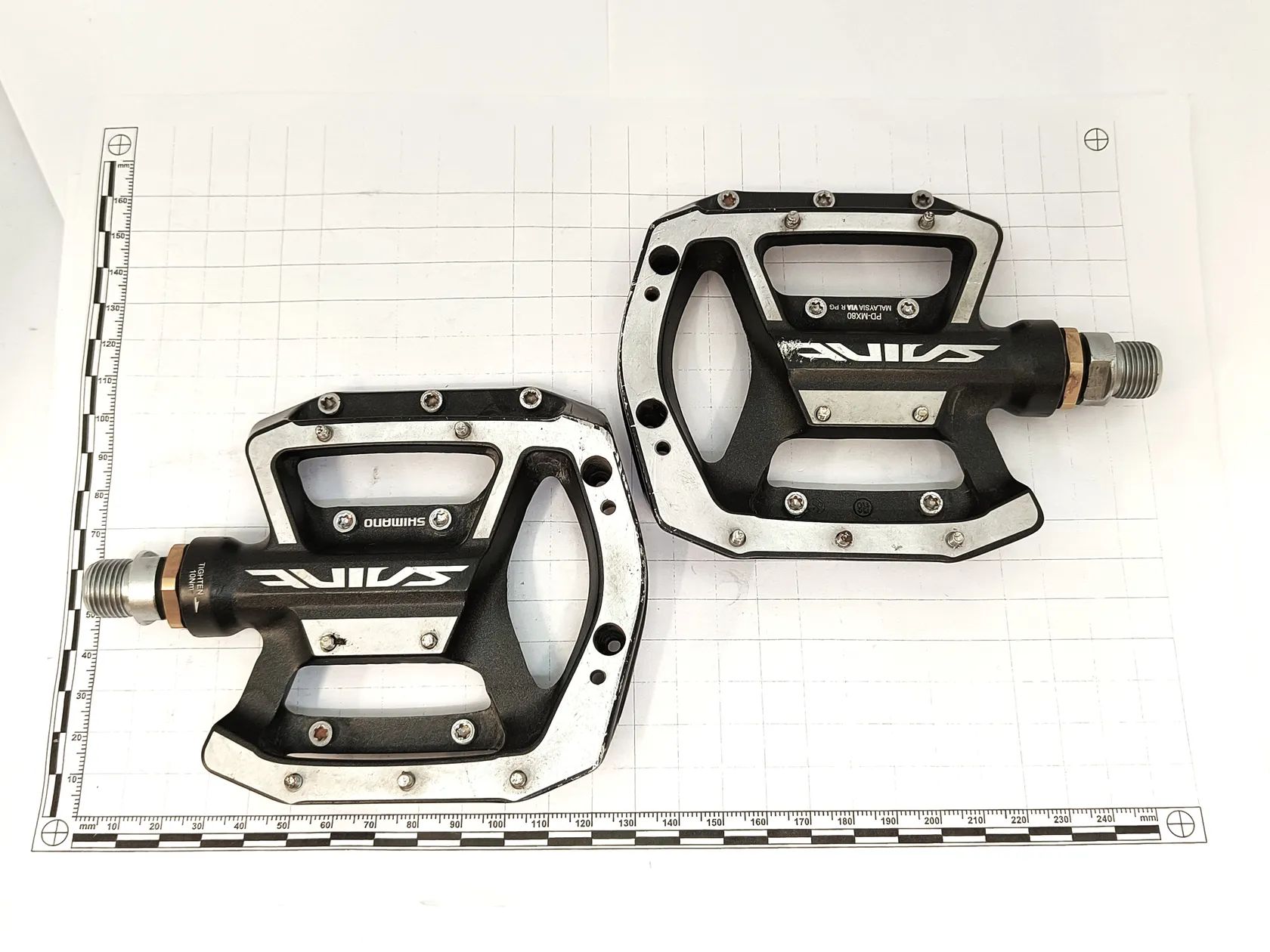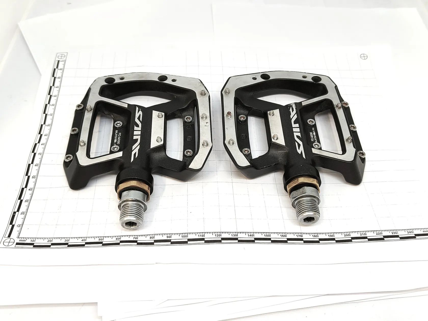 Prodám pár vyjížděk jeté pedály platformy v perfektním stavu - Shimano Saint PD-MX80. Všechny piny na svém místě, pouze drobné povrchové škrábanečky na těle pedálu, ložiska samozřejmě bez známek opotřebení. Nejlépe osobní předání v Praze nebo Praha - Východ, případně pošlu Zásilkovnou