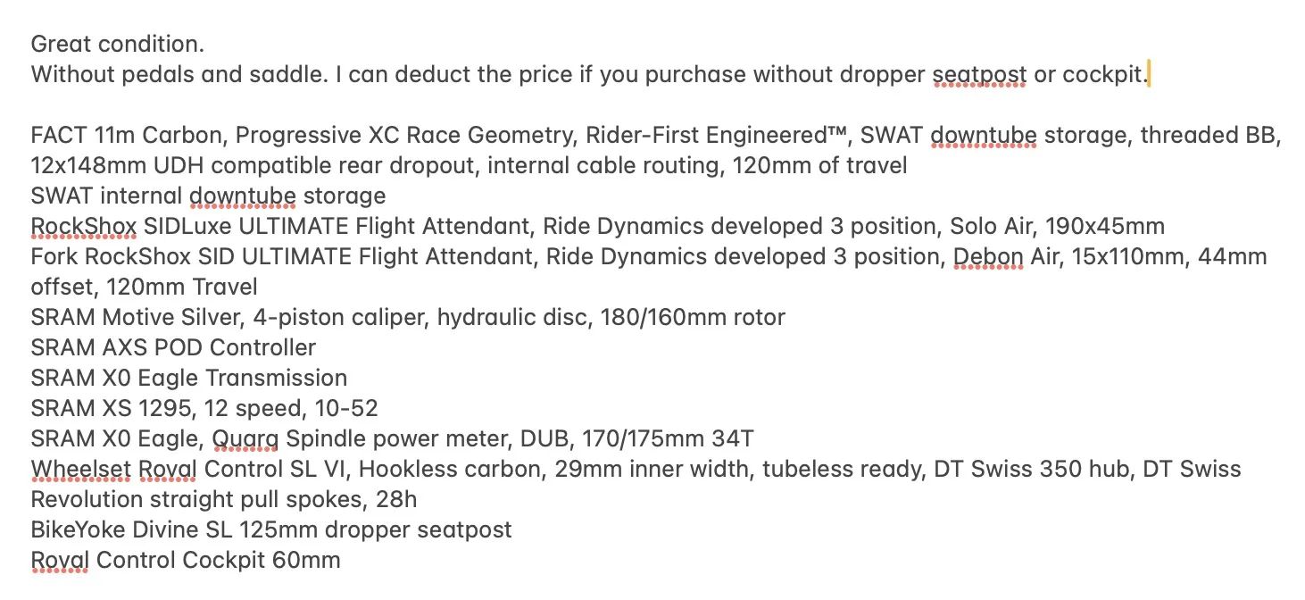 Duvodem prodeje jest, ze uz moc nejezdim, nemam cas, jdu radsi do gymu nebo behat. Postavim si pak nejake jine kolo s polovicnim rozpoctem.