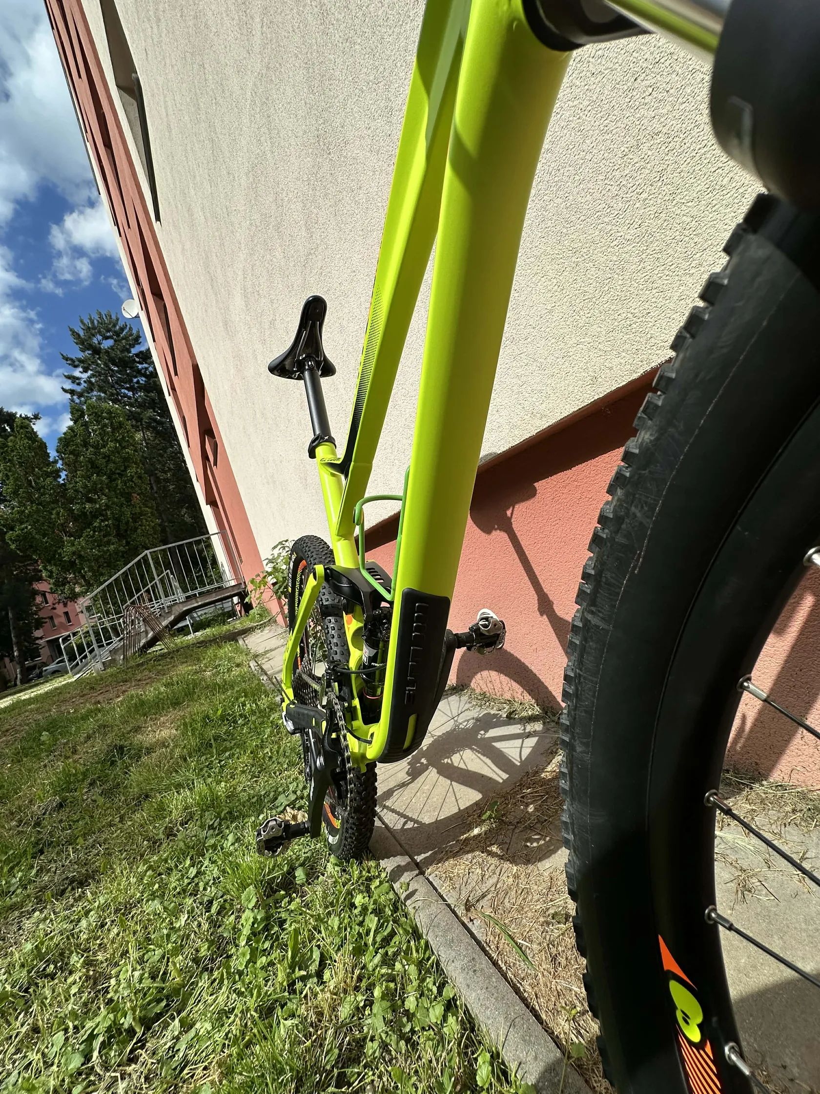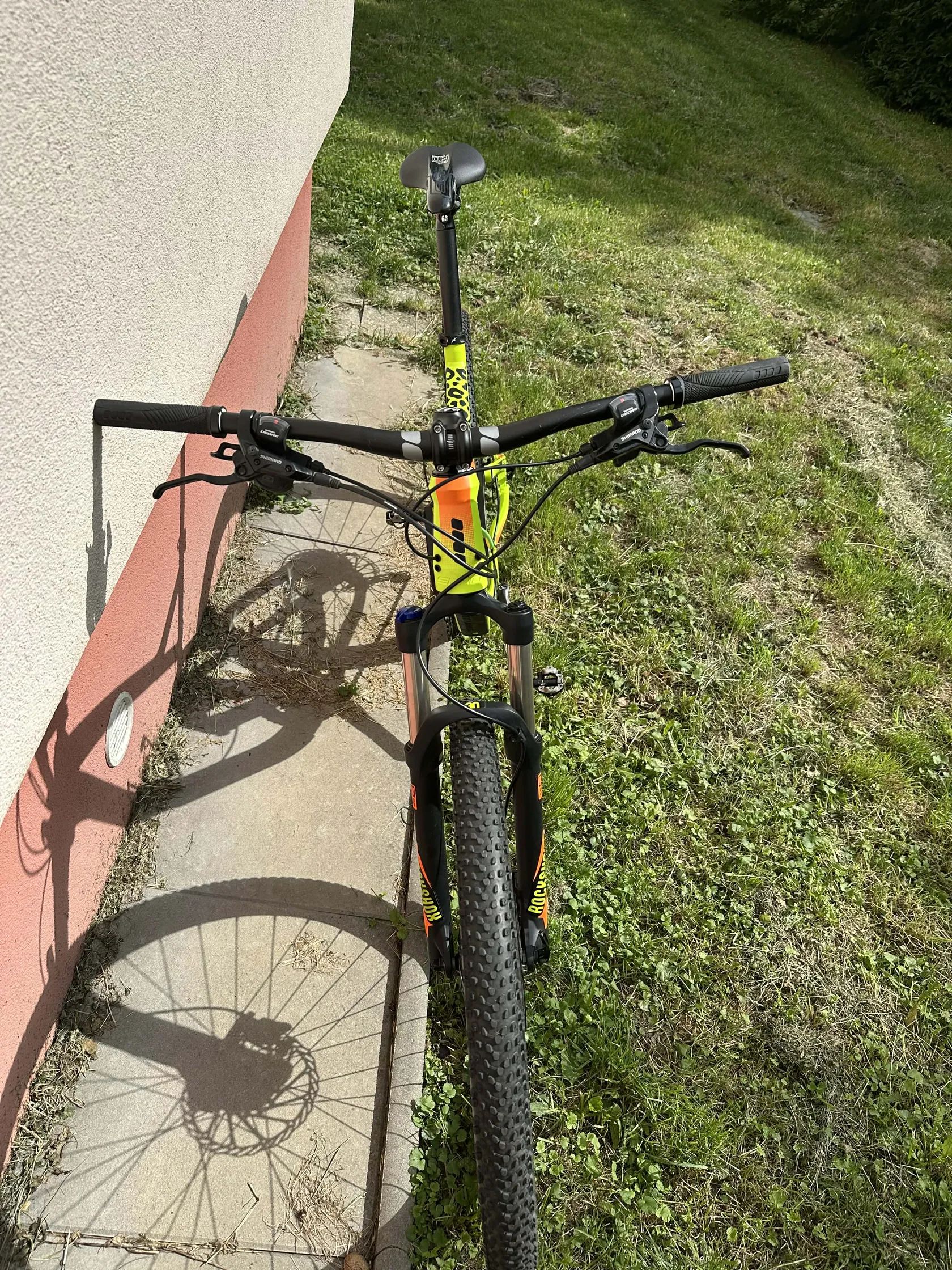 Kolo má nízký nájezd a bylo pravidelně kontrolované. Aktuálně je nasazen zcela nový řetěz. Kolo je v celkově skvělé kondici, nicméně jakožto ježděný stroj jsou zde vidět drobné oděrky na řídítkách a jeden větší škrábanec u klik (viz foto) – pouze estetická záležitost, na funkci nemá vliv. Mechanismus zamykání přední vidlice (lockout) nefunguje, vidlice neustále pruží (nezamyká se). Samotný chod vidlice a tlumení jsou ale v naprostém pořádku. Oprava vychází cenově cca 1000-1500Kč. Prodej z důvodu nevyužití.