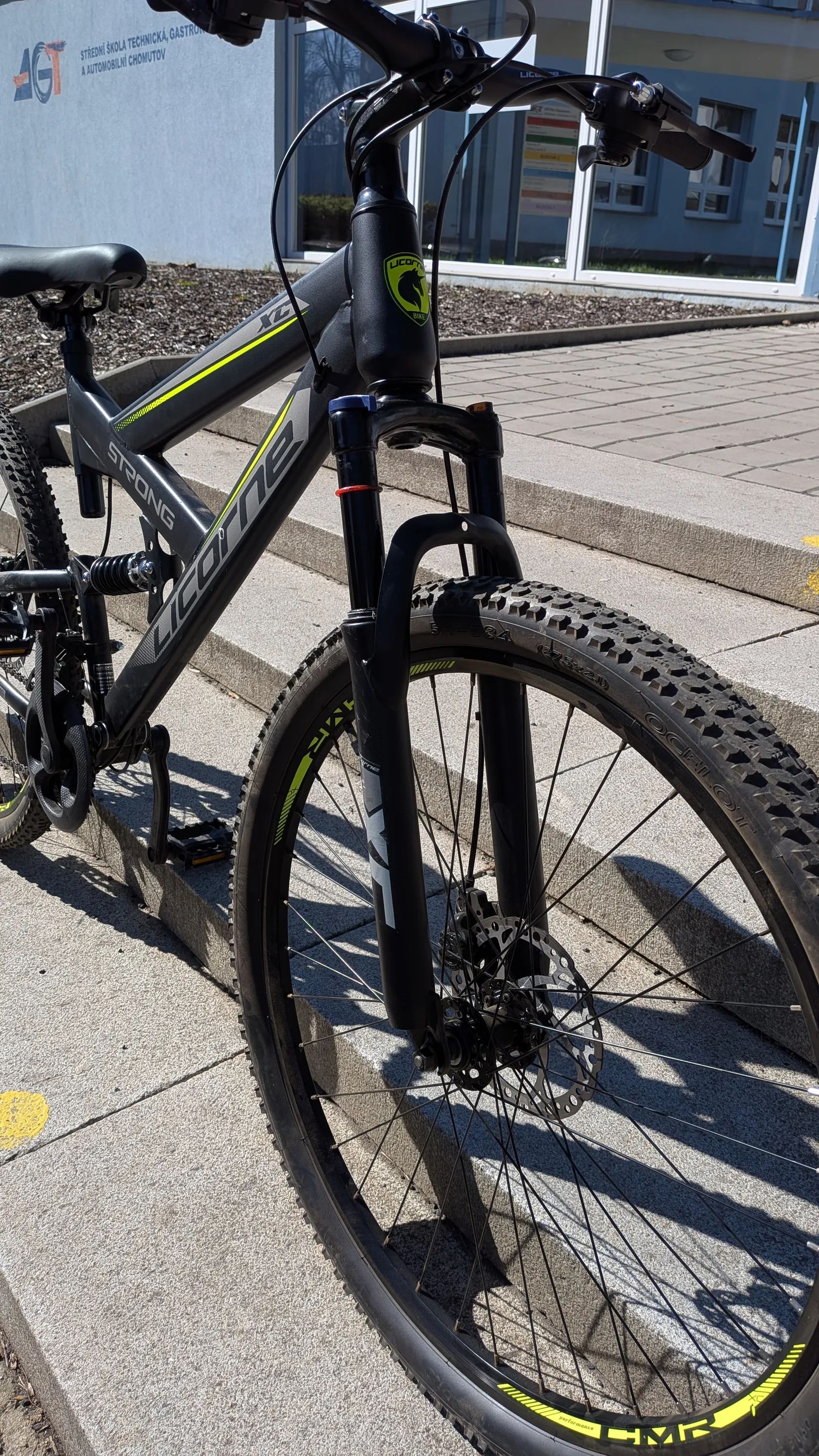 Horské kolo Licorne Strong Prodám horské kolo Licorne Strong XC. Kolo je v pěkném stavu, málo jeté a plně funkční. Má celoodpružený rám (přední vidlice + zadní tlumič), kotoučové mechanické brzdy a řazení Shimano na páčky. Vhodné jak do terénu, tak i na běžné ježdění po městě nebo cyklostezkách. Nese nějaké drobné oděrky z používání, jinak bez problémů –koupeno v Červenci 2025 Kola-27,5 Mohu do určité vzdálenosti dovézt blíž