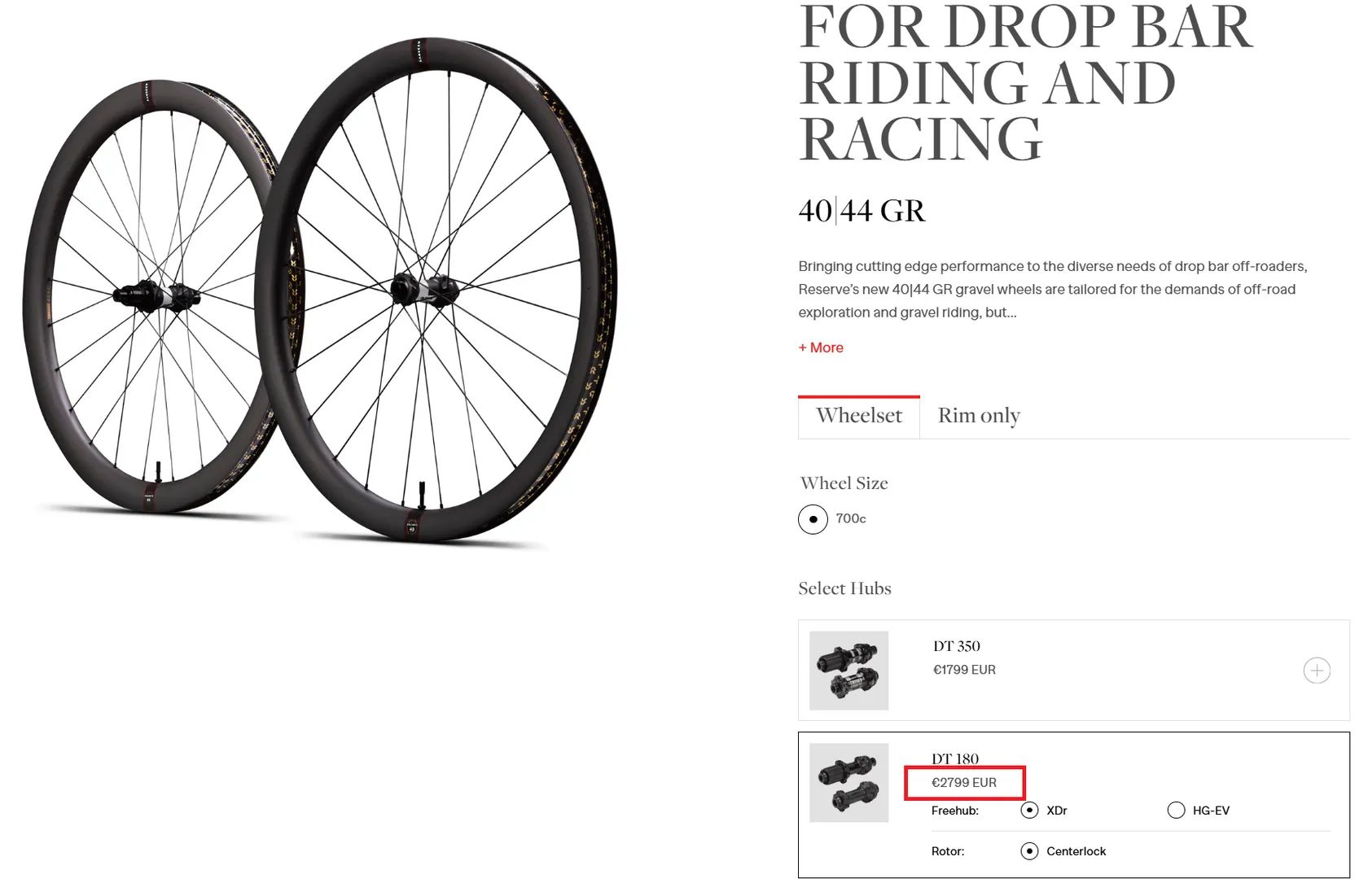 Reserve 40/44 GR na nábojích DT Swiss 180 s keramickými ložisky
