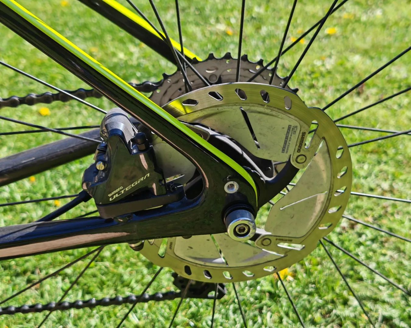 Hydraulické kotoučové brzdy Ultegra s kotouči RT800 – silný a citlivý brzdný účinek.