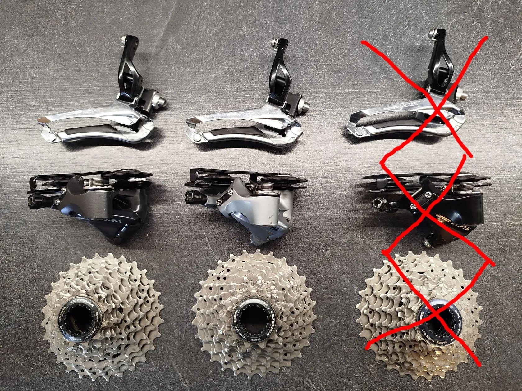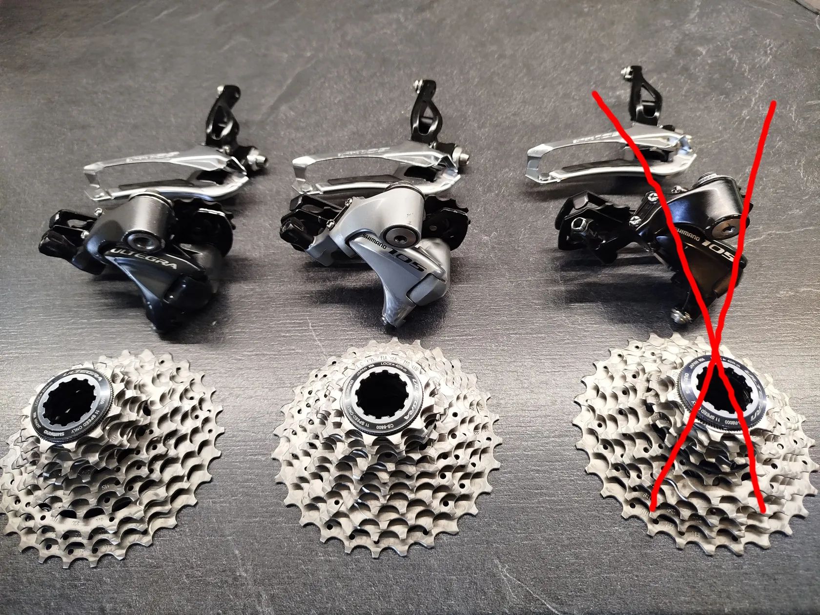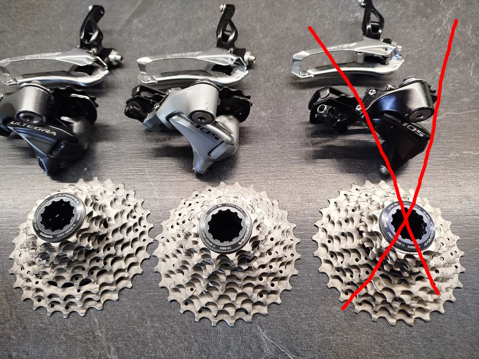 Stav viz foto, v pěkném stavu, pro 11 st. řazení, 105 5800 - Ultegra 6800, krátká ramínka přehazovačky, kazeta 11-28, přesmykač na navářku, na přání můžu blíže nafotit. Cena při osobním předání, za jeden set P,P,K. Poštovné hradí kupující.