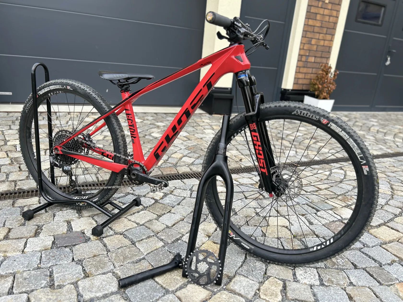 Prodám lehké závodní karbonové kolo Ghost lector 1.6 XS rám. Kolo je na 26 palc. kolech ale lze dát i 27,5 palc. kola. Součástí je i pevná karbonová vidlice, karbonová sedlovka a náhradní převodník o 32 zubech.