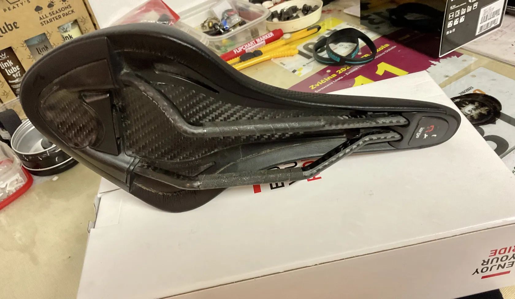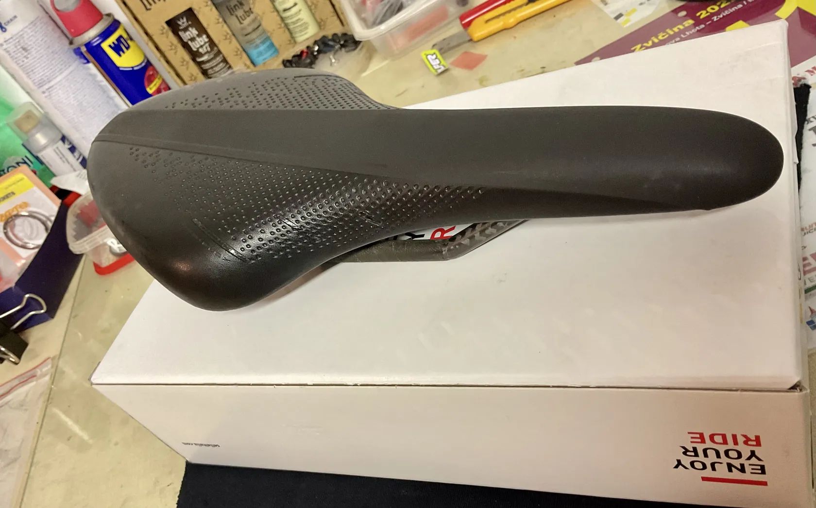 Prodám kvalitní lehké karbonové silniční sedlo Fizik Arione R1 Carbon, 140mm - širší varianta. Sedlo má oválné karbonové ližiny 7x9 mm, spodní část full karbon. Váha okolo 190g. Délka: 300 mm. Sedlo je používané ca 2 sezony na silničním kole, bez viditelných oděrek nebo poškozených míst. Celkově velmi dobrý stav a zcela v pořádku - viz fotografie. Osobní předání LBC nebo poštou/zásilkovna za náklady k ceně. PC 4.000Kč