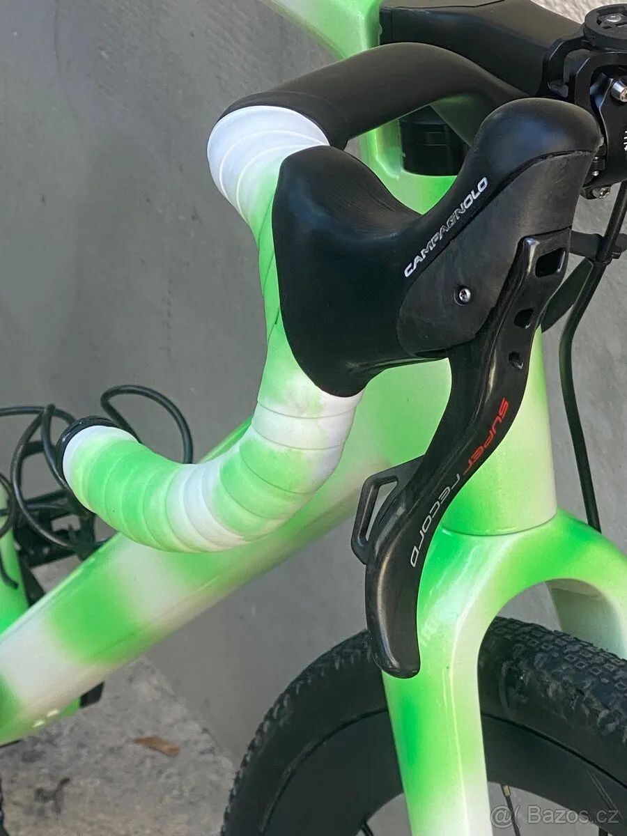 Custom gravel / all road stavba na rámu Canyon Grail CF SL. Rám má nový 2k lak a byl upraven pro použití s vidlicí s průměrem sloupku 1 1/8. Do rámu byly epoxidem vlepeny misky na ložiska. Výhodou je absence originálních příliš širokých řídítek. Výškově jsou teď řídítka více méně stejně. Původní sériové číslo z Rámu samozřejmě mám k dispozici. Stavba: - Ram a vidlice samozřejmě karbon. Původní lak bych mechanicky odstraněn. Na horní trubce proběhla drobná oprava. Otvory pro vedení byly vyplněny karbonem a epoxidem. Ponechán byl pouze jeden ze 4 - Rám je teď kompatibilní s elektrickými sadami - AXS / Di2, EPS nebo s mechanickými sadami 1x (tedy s jednopřevodníkem) - Sada Campagnolo Super Record EPS 2x12 Vše SuperRecord, až na kliky (ty jsou Chorus 48/32 a to protože u SR nejsou tyto převody možné). Mam případně i Super Record (50/34) Misky na ložiska byly instalovány s loctite 603. Tedy nejlépe jak to jde. - karbonová kola Elite, výška 38mm, šířka 32,5mm / 25mm. naboje straightpull, ratchet 36z (krásný výrazný zvuk). Ořech Campagnolo. Nově nalepená tubeless páska Pláště 700c x 38 (reálně měří něco přes 40mm) nově nahozeny tubeless. - Řidítka karbonová, šířka 340mm - 400mm Nová omotávka PRO Stack je obdobný jako u originálního howerbaru a to pro delší představec s 8 stupňovým sklonem místo původního 17 stupňového. Řidítka mají rise 35mm. Lze se dostat i výše při výměně představce s jiným úhlem. - Použitý představec je basso 110mm/8dg. - Sedlovka karbon bez offsetu, sedlo smp stratos s Ti lyžinami (mohu vyměnit za jiné) Úchyt na Garmin/ wahoo je v ceně. V ceně je taky nabíječka. Ke kolu mohu přidat odvzdušňovací sadu. Na kole budou při prodeji nainstalovány jiné košíky. Pedály přidám - look / Shimano (dle výběru)