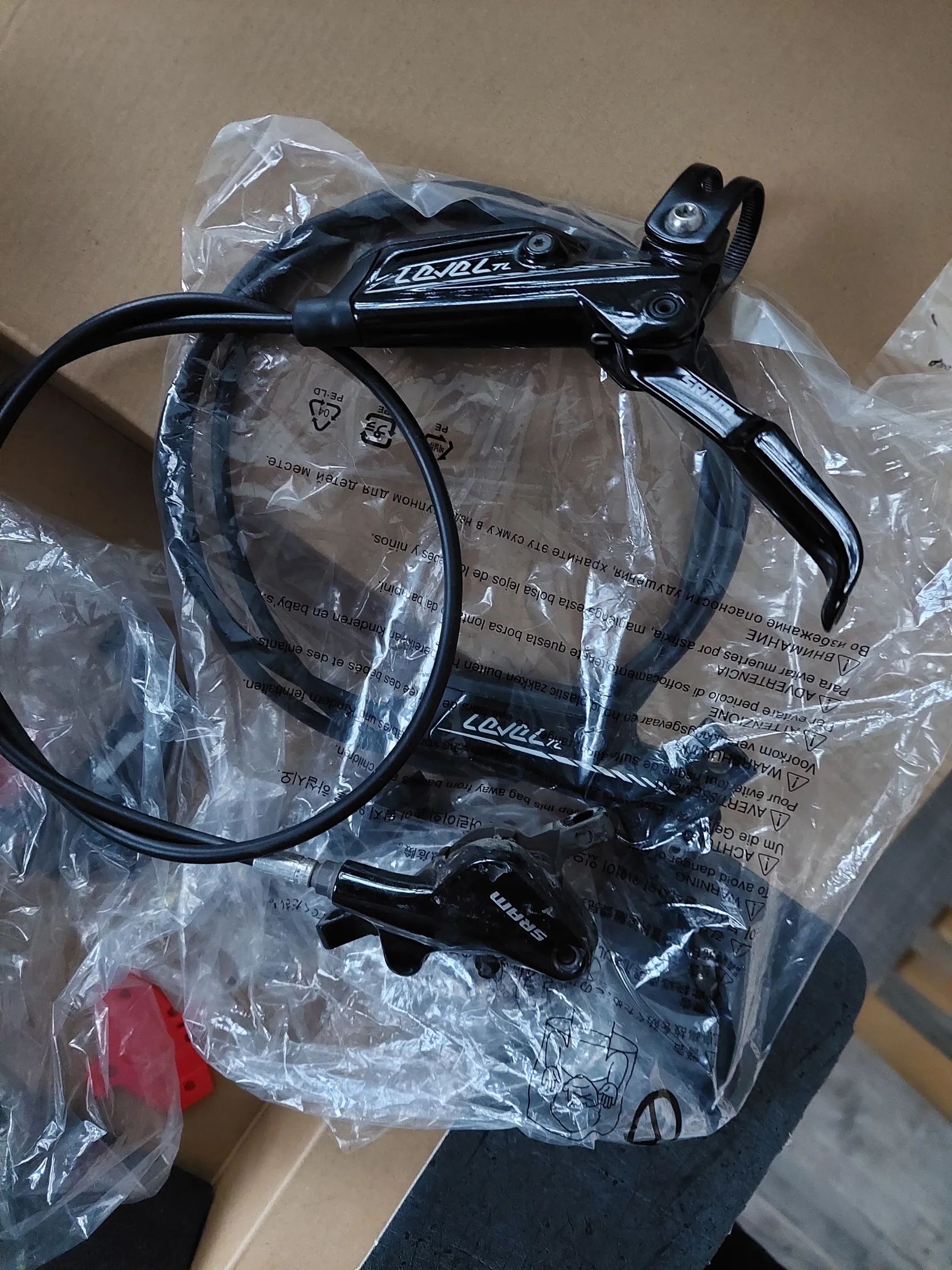 Prodám použité brzdy (třemeny + páčky s příslušenstvím) Sram Level TL. Přední + zadní brzda dohromady.
