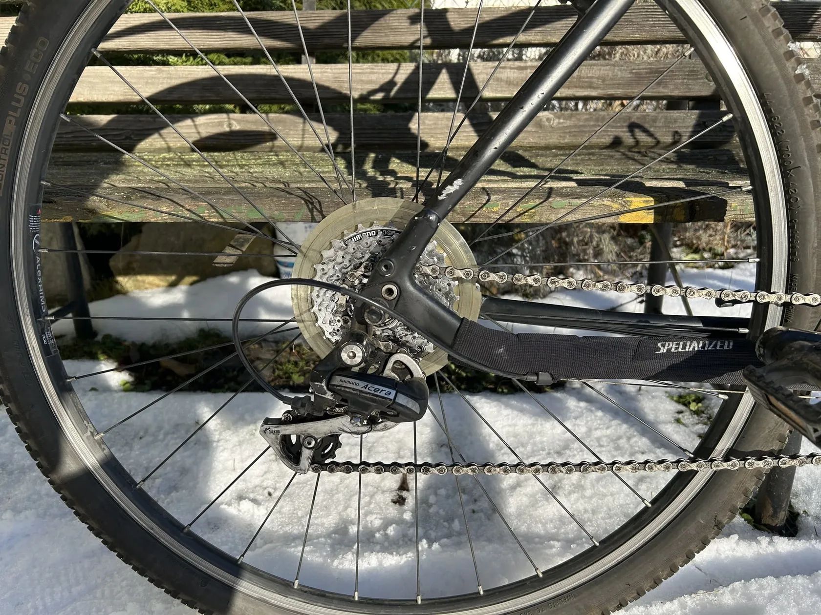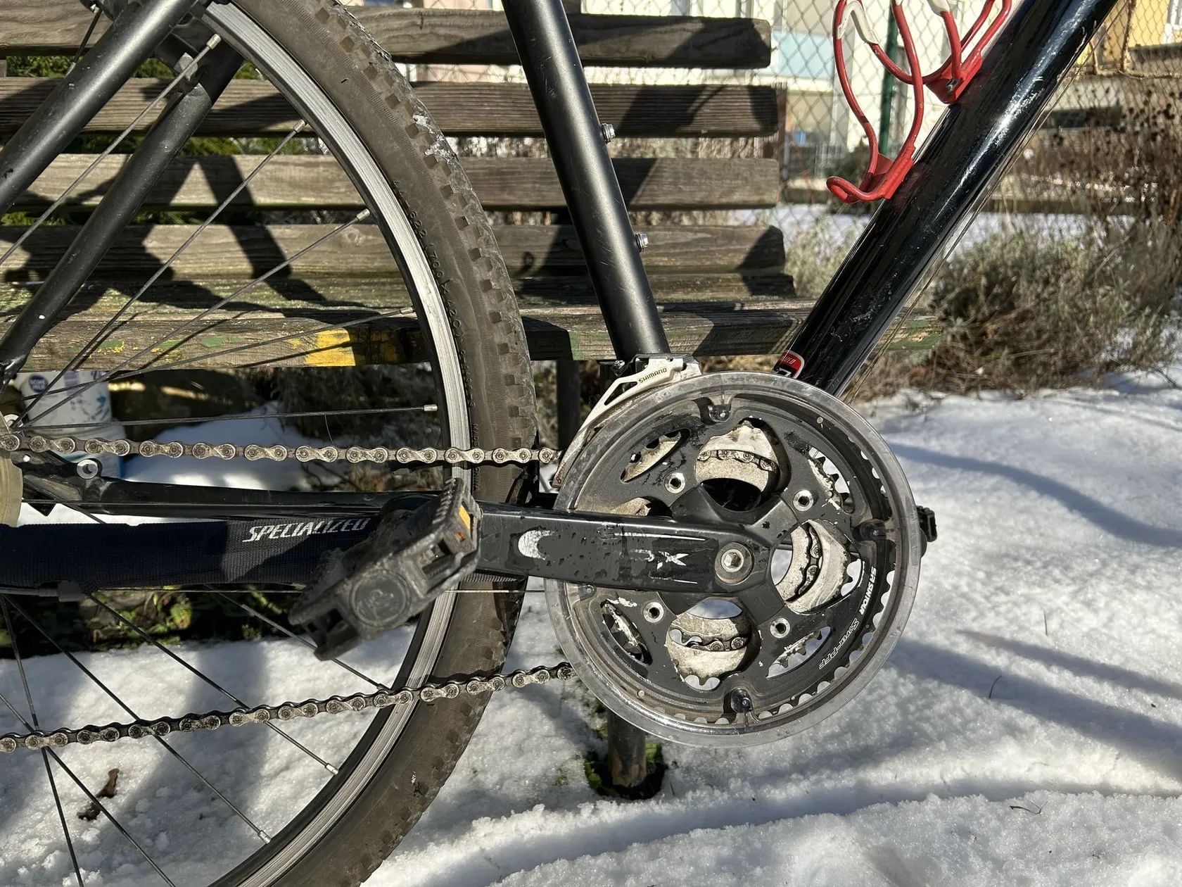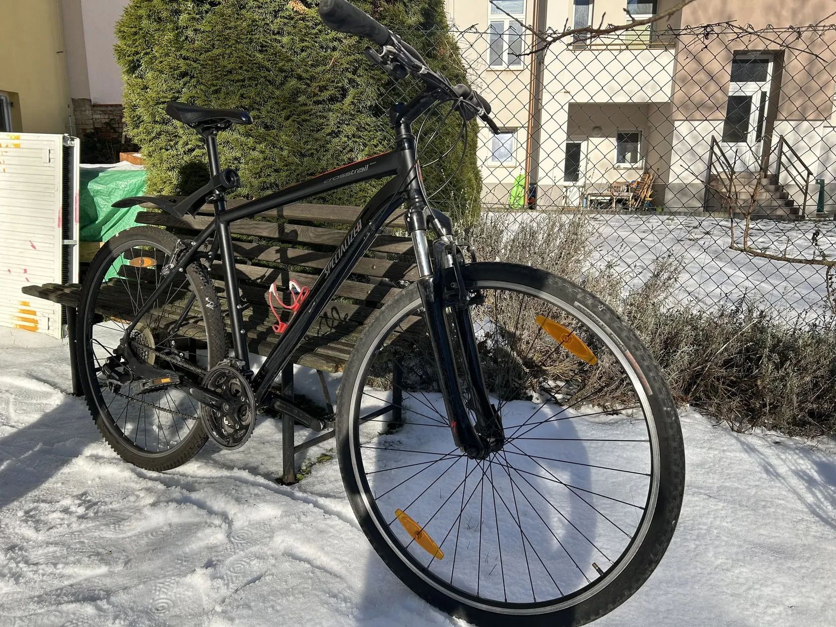 Prodám černé krosové kolo Specialized Crosstrail s hliníkovým rámem a odpruženou vidlicí z doby někdy před rokem 2015. Vše originální (původní), řetěz a zadní převody vyměněny; velikost rámu 21 (vhodné pro postavu od cca 180 cm). Přecházíme na silnici a tak posíláme dál :-) Specifikace podobná: https://www.specialized.com/us/en/crosstrail/p/34921?color=79711-34921