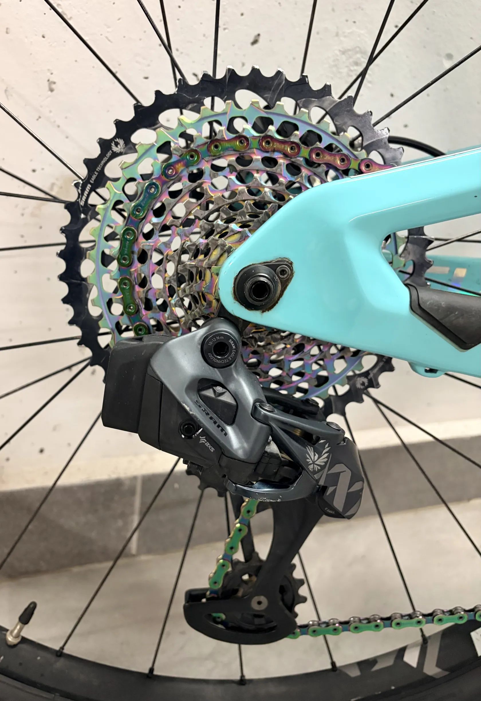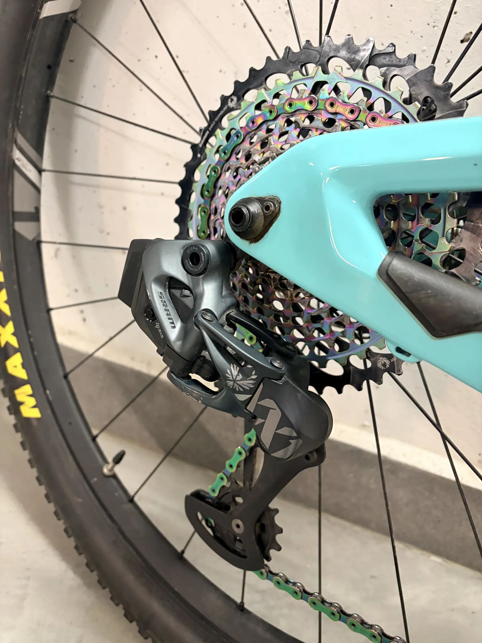 Pohon SRAM XX1 AXS (bezdrátové elektronické řazení), kliky XX1 Carbon, kazeta a řetěz XX1 Rainbow