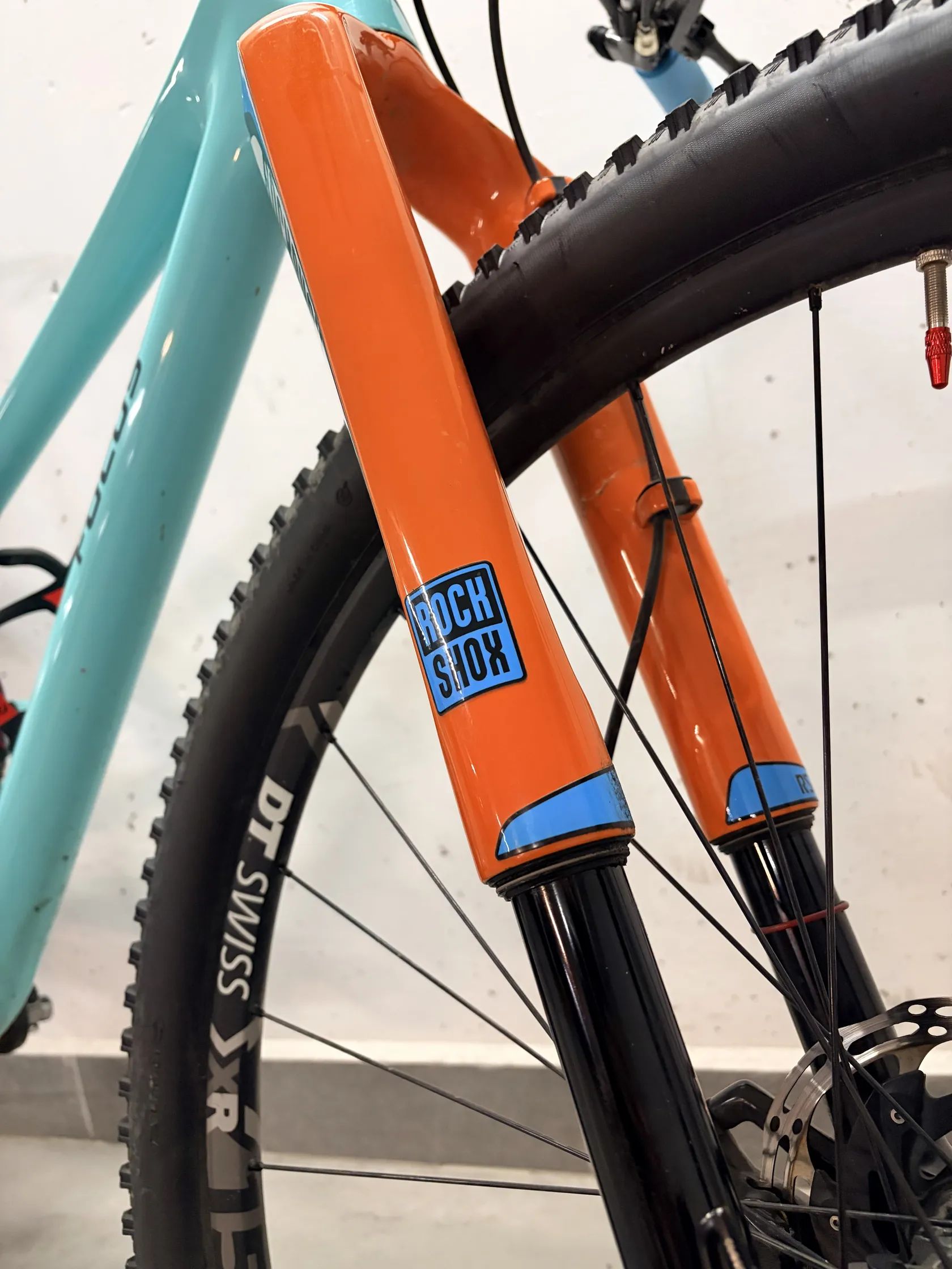 Odpružení: RockShox RS1 Carbon (100 mm) + zadní tlumič RockShox, oba po servisu, hydraulický lockout z řídítek