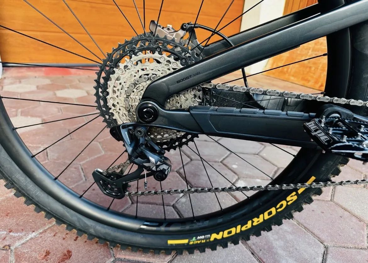 Prodám své opečovávané enduro Trek Slash 9.8 v karbonovém provedení a velikosti L (ideální pro postavu cca 177–188 cm). Kolo je v super stavu, pouze s drobnými provozními oděrkami, které k tomuto sportu patří. Oproti sériové verzi je kolo výrazně vylepšeno o špičkové komponenty: • Odpružení: Vidlice upgrade na RockShox ZEB Ultimate (170 mm) – nejvyšší model. Vzadu RockShox Super Deluxe Ultimate (160 mm). • Brzdy: Špičkové čtyřpístky Hayes Dominion A4 v barvě Bronze (neuvěřitelný brzdný účinek) + kotouče Shimano ICE TECH SM-RT86 (203 mm vpředu i vzadu). • Řazení: Upgrade na SRAM X01 (přehazovačka i řazení) – precizní a lehké. • Kola: Karbonový set Bontrager Line Elite 30 (29") • Sedlovka: Spolehlivá OneUp V2 s vysokým zdvihem. • Pláště: Osazeno prémiovými plášti Pirelli Scorpion. Důležité info k řídítkům: Na fotkách jsou řídítka z mého předchozího kola (jsou lehce poškrábaná). Ke kolu ale přidávám zcela nová originální karbonová řídítka, která na kole byla původně a jsou netknutá. Ke kolu dále přidám: • Originální teleskopickou sedlovku. • Originální košík na láhev Trek. • Bonus: Novou přehazovačku Shimano XT, pokud by někdo preferoval návrat k pohonu Shimano