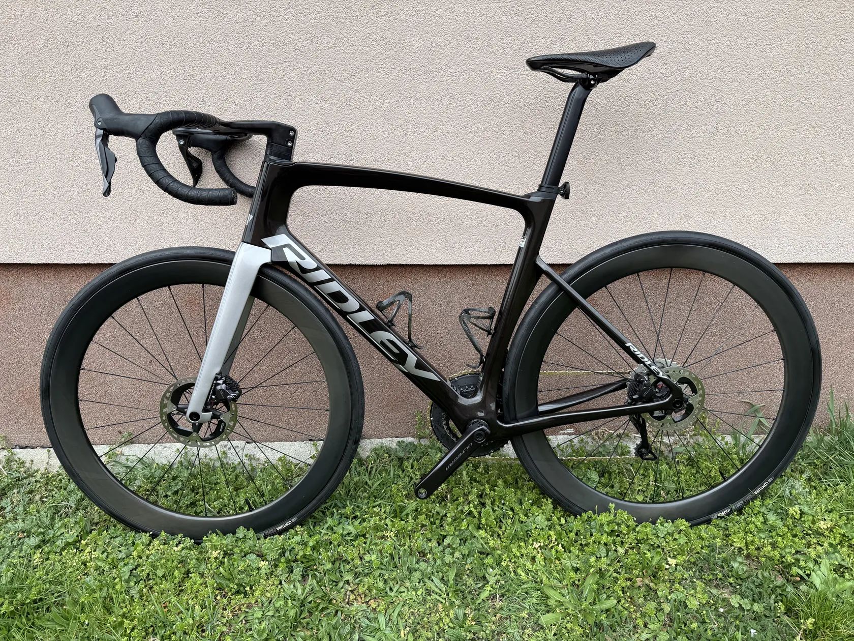 Prodám Ridley Noah velikost M Výbava: Shimano Ultegra 2x12 Carbon kokpit Forza na Cirrus pro 400x90mm Carbon kola 50mm , vnitřní šířka 22mm Náboje Dt240 Pneu Tufo Comtura Prima 28