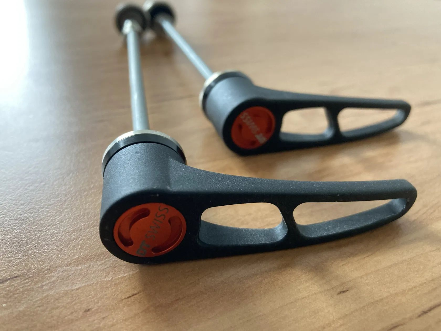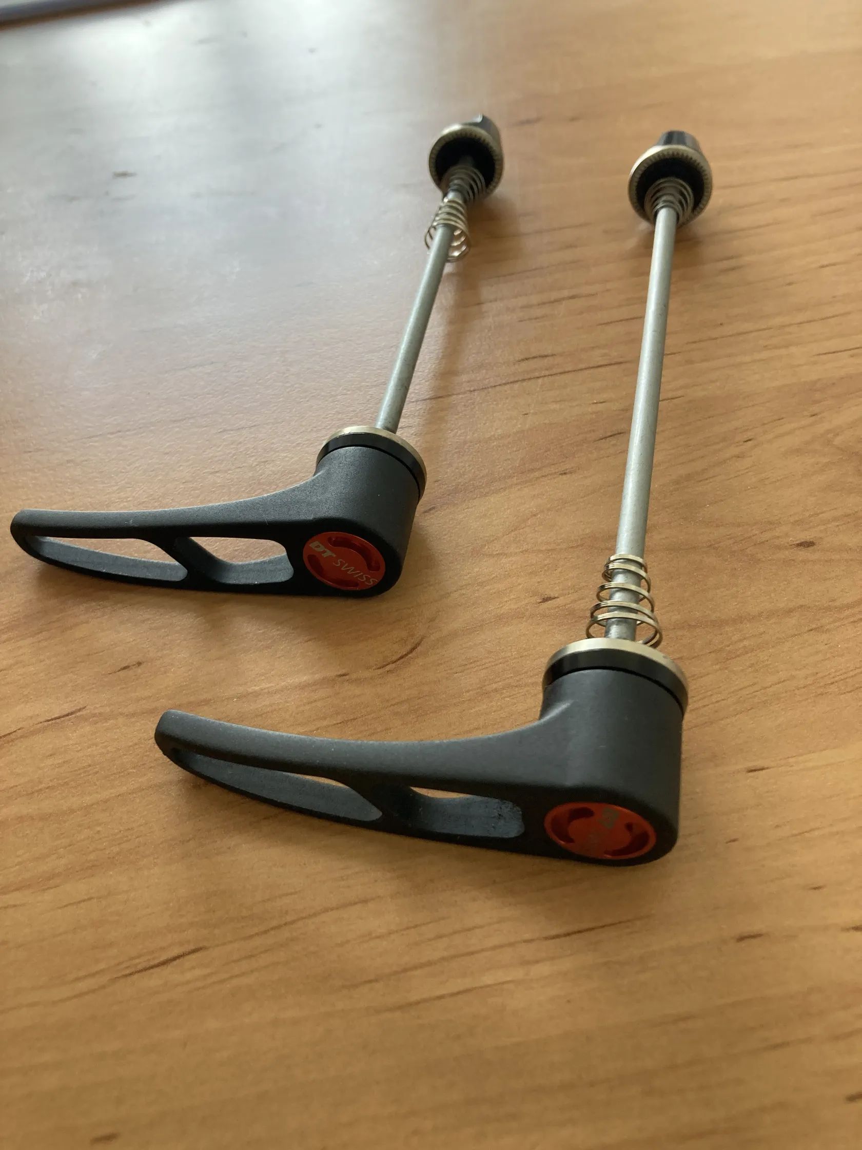 Prodám rychloupínáky DT Swiss RWS, pro silniční kola na ráfkové brzdy, přední 5/100mm + zadní 5/130mm, cena za pár.