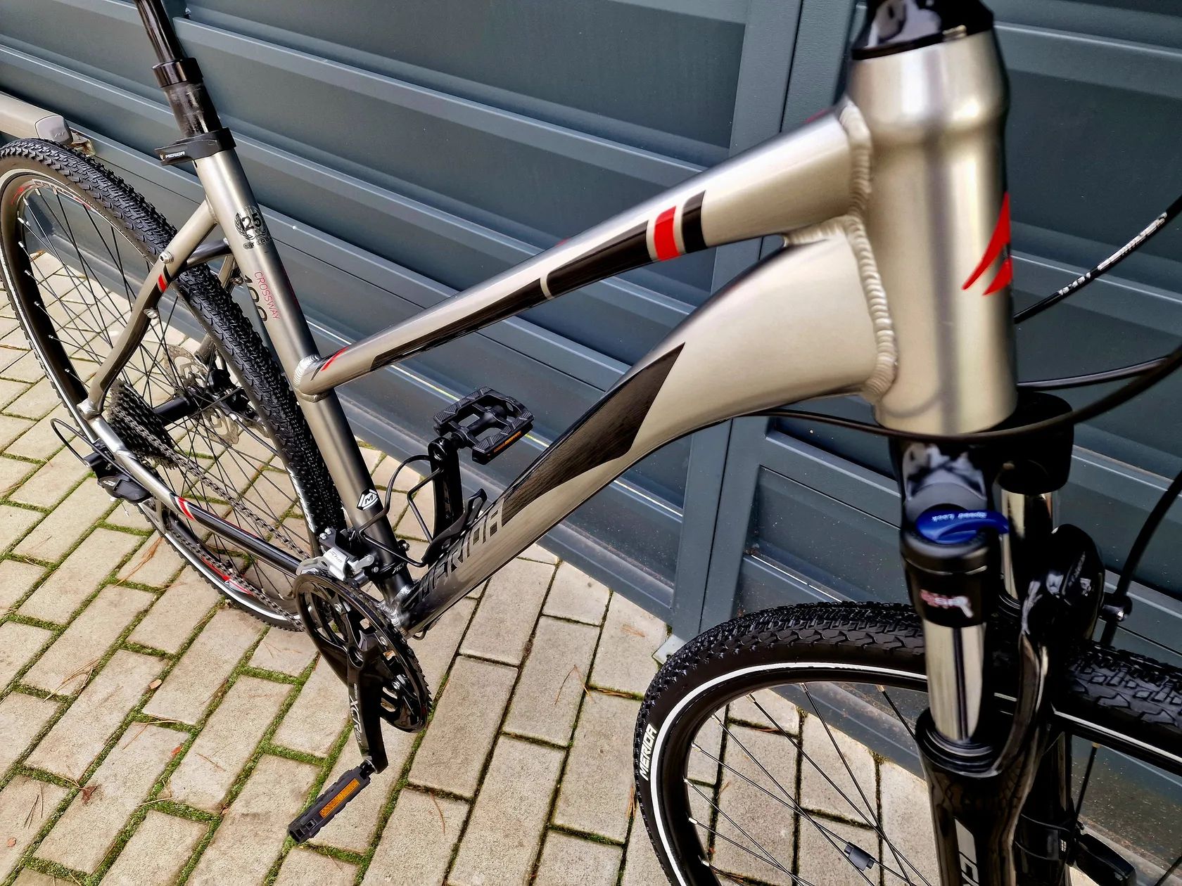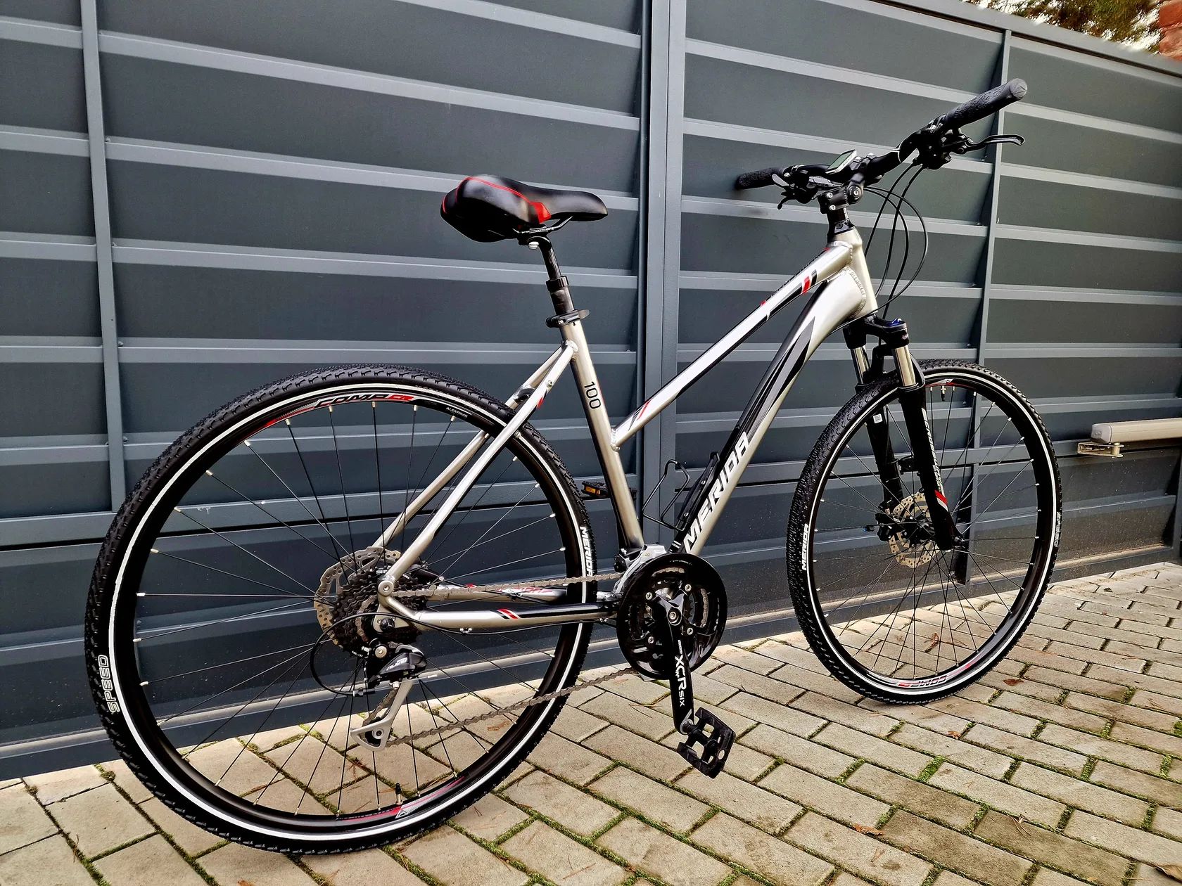 Dámské crossové/trekingové hliníkové kolo Merida Kolo je v zánovním stavu bez vůlí a závad. Kolo je seřízené a připravené pro nového majitele. Málo používané, nájezd do 20km Hliníkový rám velikost 19" Ráfky velikost 28" Odpružená vidlice s nastavením tuhosti a zámkem z korunky SR Nex Hydraulické kotoučové brzdy Shimano Přehazovačka Shimano Alivio Přesmykač Shimano Atus Páky řazení Shimano Altus 27 převodů (3x9) Kliky Sr Xcr Odpružená sedlovka s nastavením tuhosti Výškově stavitelný představec Tachometr, držák na láhev Vhodné pro postavu cca 150-175cm Při prodeji vystavím doklad o koupi. Lze poslat poštou při platbě převodem na účet. Prohlídka možná kdykoliv po dohodě. Záruka na původ zboží. Jirny (Praha-Východ)