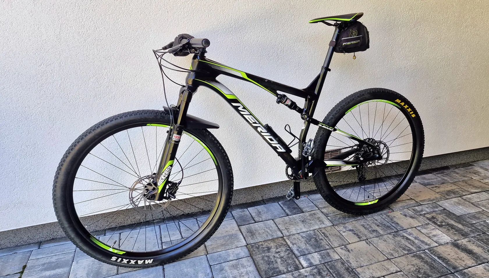 Prodám carbonové celoodpružené horské kolo Merida ninety-six 9.6000. První majitel s doklady. Rám carbon velikost Xl..178-195cm., plus sedlovka carbon. Osazení je sram GX. PŘEVOD 1X11. BRZDY SRAM. Pérování rock shock předek Reba, zadek monarch Rt3. Obě zamykací. Nyní Nové PLÁŠTĚ MAXXIS RECON 2.4 Je to velmi lehké a rychlé Xc. Pravidelný servis. Velmi dobrý stav viz foto. Více po telefonu. Původní cena 84000,-Kč. Ke kolu originál sedlo plus nové jiné a řídítka originál a jedny širší. Žádné úpravy pouze zadní větší kotouč. Dohoda