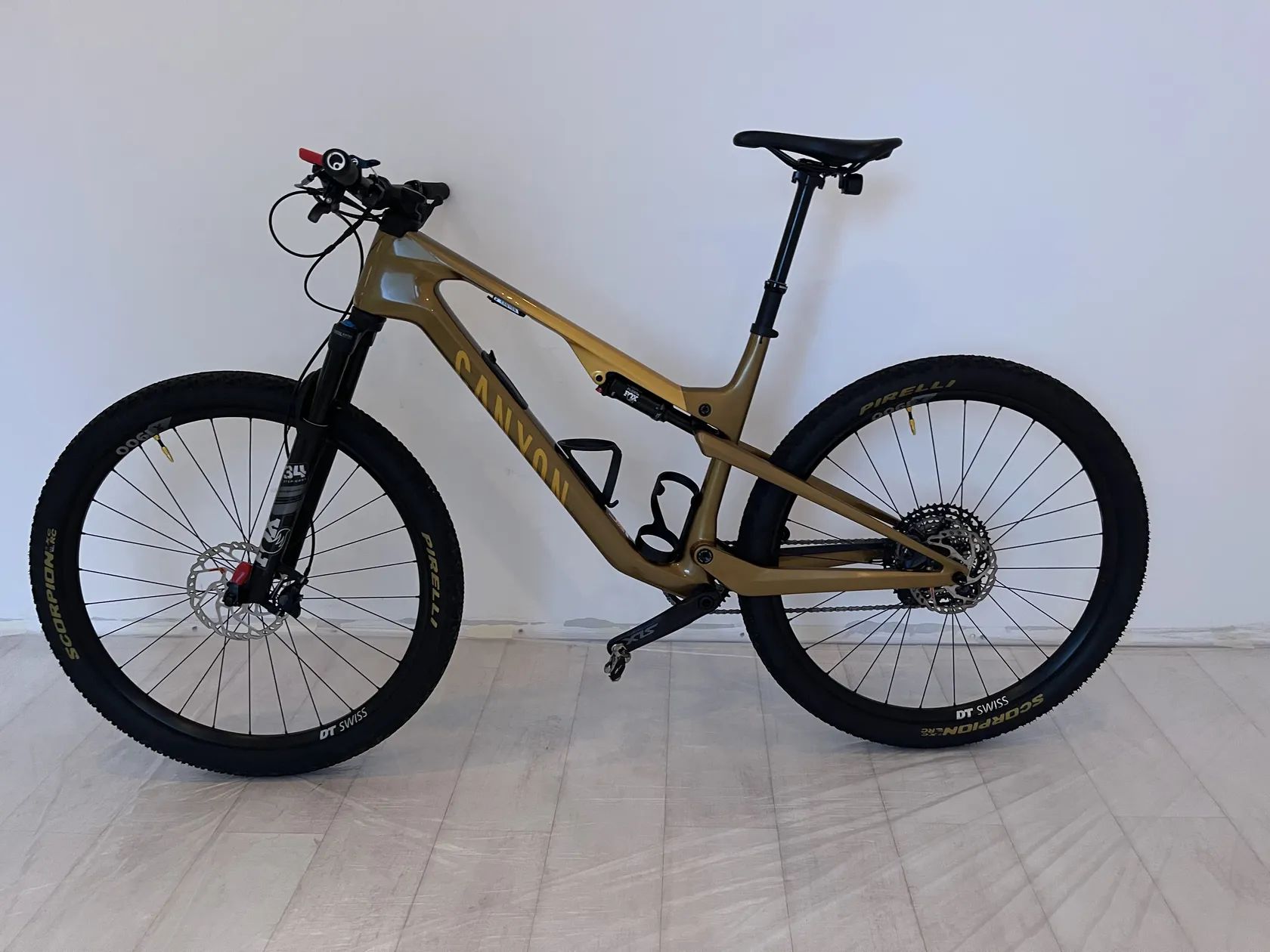 Predám veľmi málo jazdený 3.000km Canyon Lux Trail CF 7 zakúpený na jaro 2024. Karbónový rám, zdvihy 120/115mm. Bicykel je vo výbornom stave, bez jediného pádu, od novoty nalepená na rám fólia proti kamienkom a náhodnému poškriabaniu do 05/02/2026 v zákonnej 2 ročnej záruke a v záruke Canyon na rám do 05/02/2030. Od začiatku prerobené plášte na bezdušové, na konci leta menené pneumatiky Pirelli Scorpion tak ako je na fotkách s nájazdom 150km, odvtedy tak ako každý rok spravený kompletný servis a bicykel uschovaný v samostatnej izbe v byte. Na bicykli sú namontované pedále Shimano XT, dokúpené košíky aj s flaškami ktoré k bicyklu pridám, v ráme integrovaný otvor na uloženie nástrojov na opravu defektov Canyon LOAD Trail Tool Pack a iných možných porúch, nad otvorom zase uchytenie imbusových kľúčov, ktoré som si k bicyklu dokupoval, samozrejme aj toto príslušenstvo pridám k bicyklu v cene inzerátu.