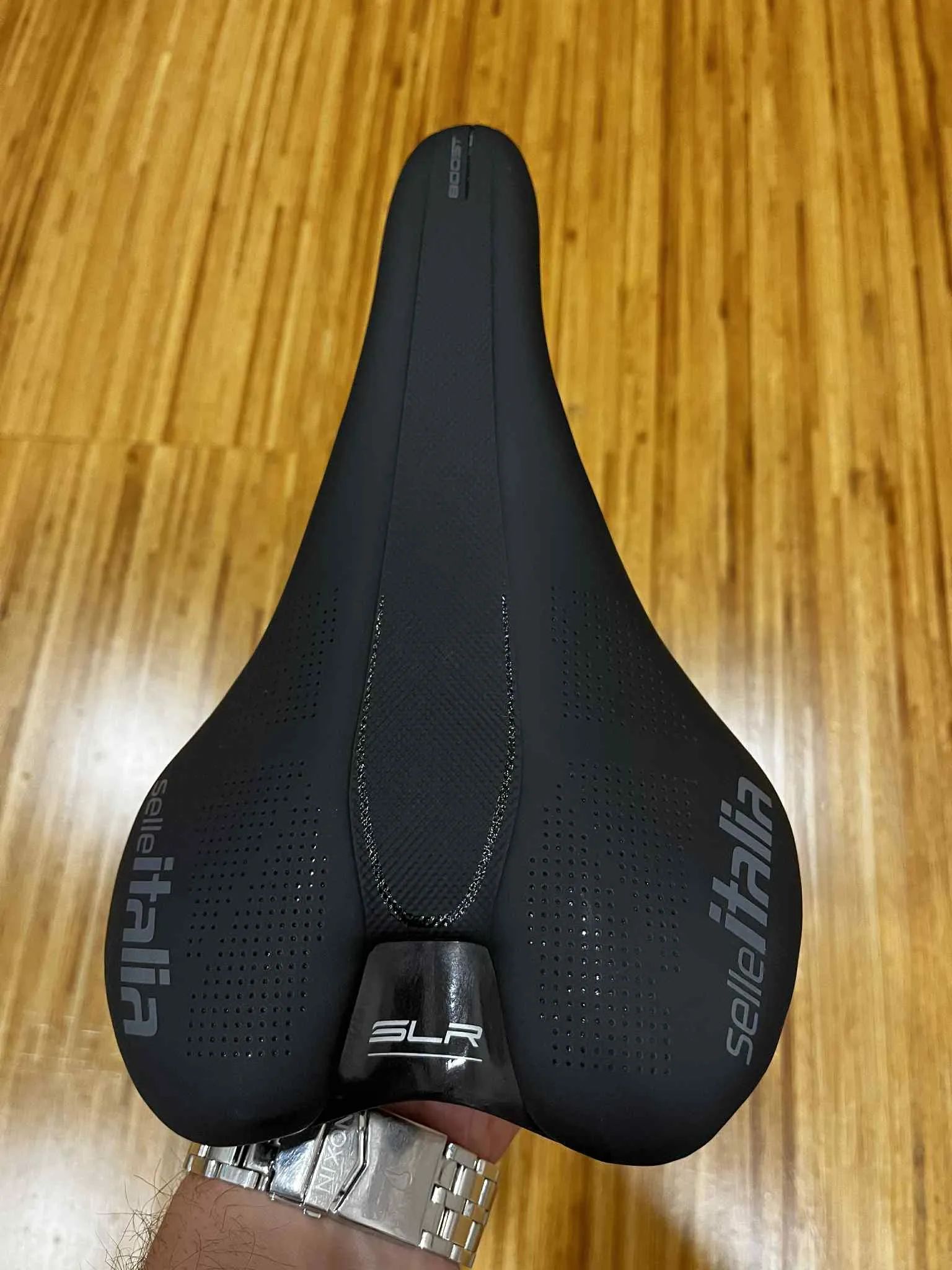 SLR Boost přináší hodnoty Selle Italia do sektoru krátkých sedel. SLR Boost doplňuje a posiluje rodinu SLR. Lehké, kompaktní a pohodlné sedlo s novou horní přední částí. Kromě tradičního Superflow má SLR Boost ještě více zvýrazněnou přední část, která umožňuje ještě více zvýšit pohodlí při tlačení a maximálně využít vlastnosti sedla. BIOMECHANICKÝ REFERENČNÍ BOD Sedlo SLR Boost má na spodní straně sedla viditelnou lesklou černou linku, která označuje polohu BRP (Biomechanical Reference Point). BRP je bod, ve kterém je šířka sedla 70 mm a ve kterém měříme užitečné parametry pro správné nastavení polohy. Vlastnosti: Potah: Soft Touch Rám: Mangan Ø 7 mm Velikost: S: 130 x 248 mm / L: 145 x 248 mm Hmotnost: S: 220 g / L: 230 g