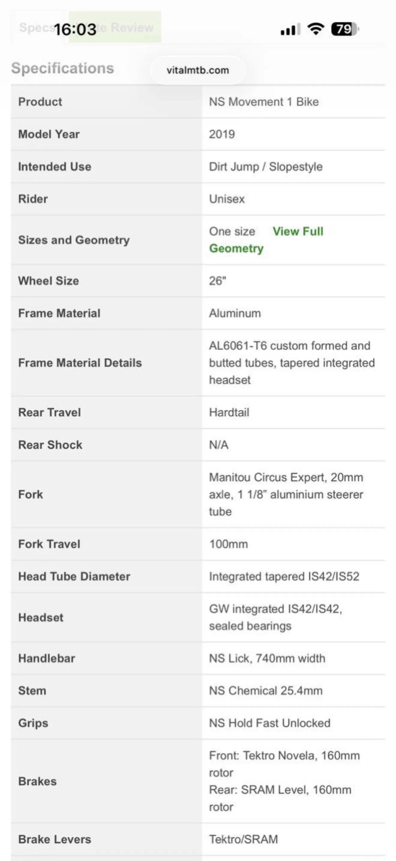 Rám: NS Bikes Movement AL6061-T6 (DJ geometrie) Kola: 26” Brzda Sram Level - zadní 180cm, kotouč 160mm, černá