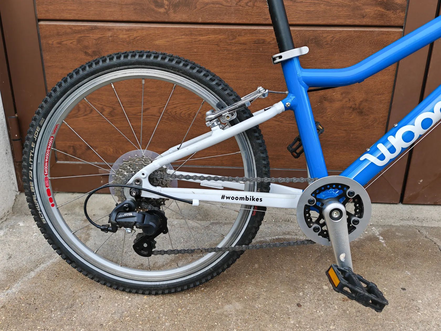 Model Woom 4 je známý svou nízkou hmotností (7,7kg) a výbornou ovladatelností, díky čemuž se dětem jezdí lehce a jistě i na delších trasách. Dětská geometrie, kvalitní brzdy a celková ergonomie výrazně zvyšují bezpečnost a radost z jízdy. Kolo je osazeno prehazovačkou Miro Shift 1x7 s otočným řazením.