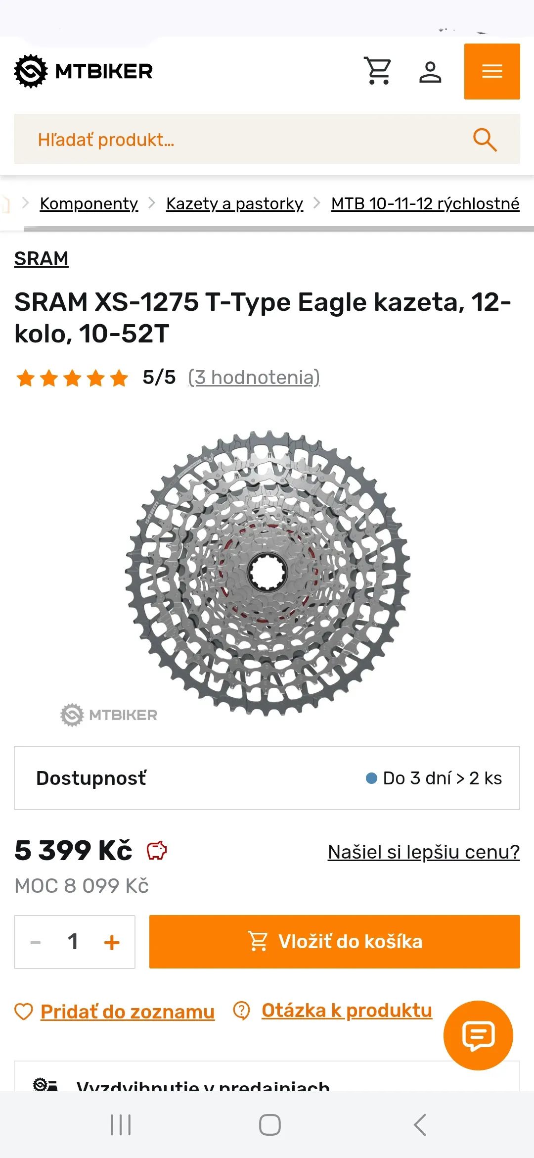 Ponúkam na predaj hore uvedenú novú kazetu Sram GX Eagle Transmission T-Type. Stav čisto nové originálne balenie vrátane faktúry a záruky. Otvorené len pre reálne fotografie do inzerátu. Jedná sa o najnovší systém Sram Transmission T-Type. S rozsahom až 520%. Vhodné aj pre E-MTB bicykle. Počet pastorkov: 12. Rozsah: 10-52z. Odstupňovanie pastorkov: 10z, 12z, 14z, 16z, 18z, 21z, 24z, 28z, 32z, 38z, 44z, 52z. Kompatibilita: Sram XD™ voľnobežka.
