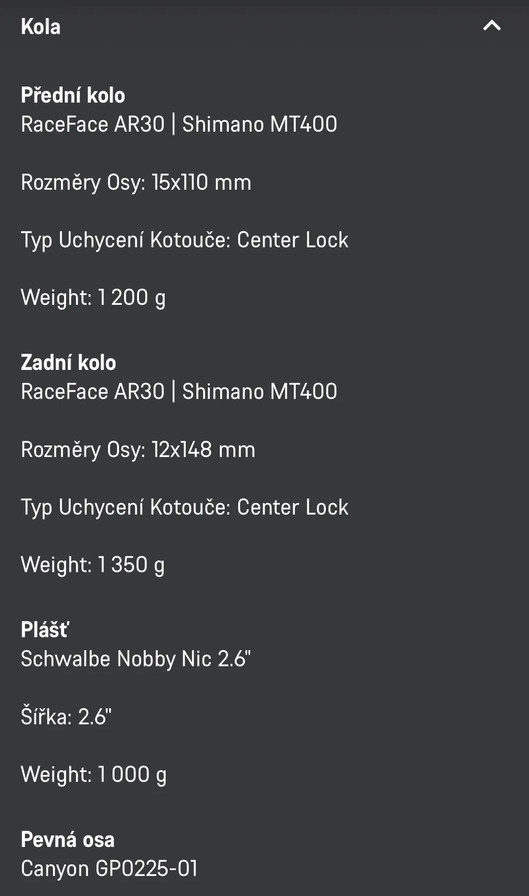 Průměr kol: | 29" |