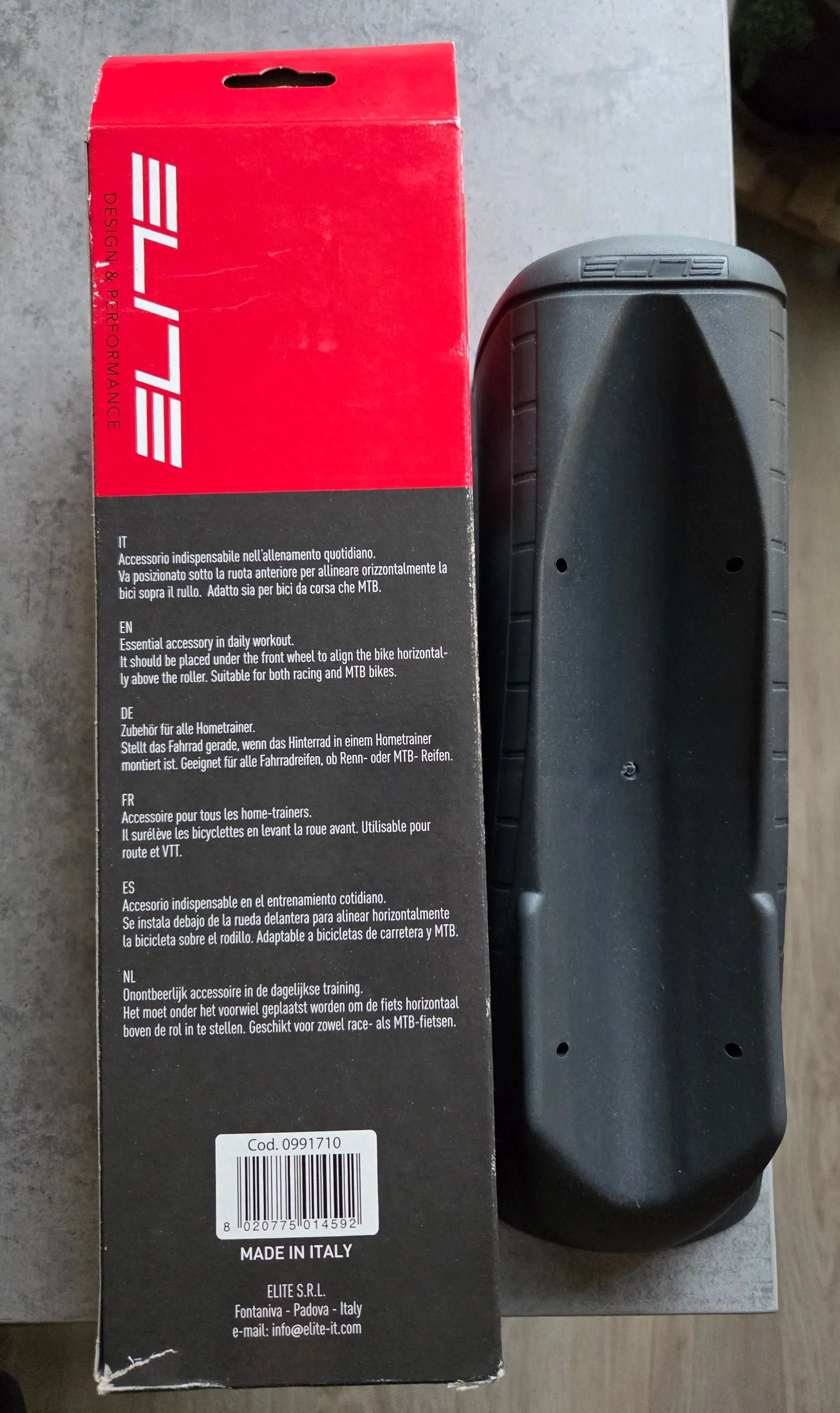 Prodám novou podložkou pod přední kolo značky Elite zakoupenou v listopadu 2025. Jedná se o užitečný doplněk ke každému cyklotrenažéru, vyrovnává posed (nesedíte jako při jízdě z kopce), vhodné pro všechny kola a trenažery.