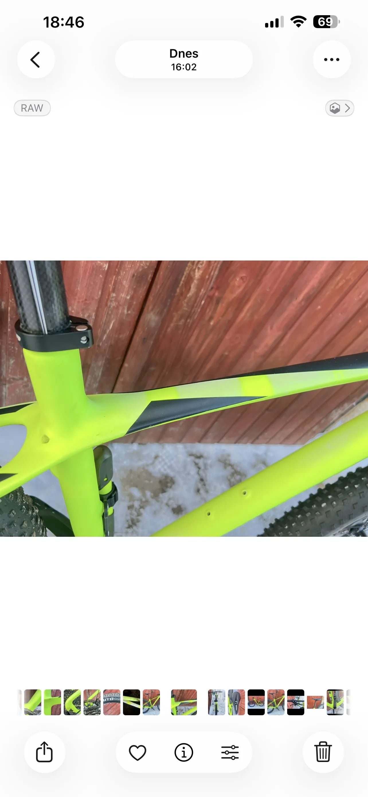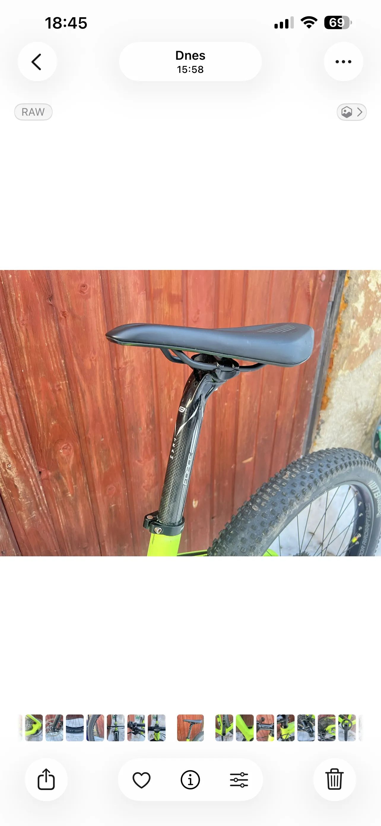 Prodám karbonové kolo značky Focus Raven velikost M, kolo jsem koupil před 8 lety od kolegy který si ho nechal nastříkat do fosforové barvy. Barva bohužel místy popraskaná a vyšisovaná od sluníčka. Někde jsem vlastni vinnou odřel rám při manipulaci, vše na fotkách. Na kole nová řidítka a sedlovka ( najeto pár km). V předu pevná osa s rychloupínákem. Nechám ke kolu pumpičku, váha bez pedálů něco málo přes 10 kg. Na ceně je možno se rozumně domluvit. Sedlovka: Force Team Carbon Seatpost Sedlo : Fizik argo vento Řidítka : Progress Pg-230 Flat 740mm 31.8 Představec : Easton EA30 Řazení : Sram GX 1x12 Přehazovačka : Sram GX 11 Speed Brzdy : Shimane Deore XT (destičky s chlazením) Kotouče : Avid Náboje : Shimano deore XT Kazeta : SunRace Kliky : Sram X1 bb30 Pevná Karbonova vidlice, bohužel značku nevím Pláště přední : Schwalbe Rocket Ron 27,5x2,8 Zadní : WTB Ranger 27,5x2,8 Ráfky : MTB - DARTMOOR Aircraft 27,5"+ Více fotek klidně zašlu na WhatsApp V případě zájmu se můžeme na ceně rozumně domluvit.