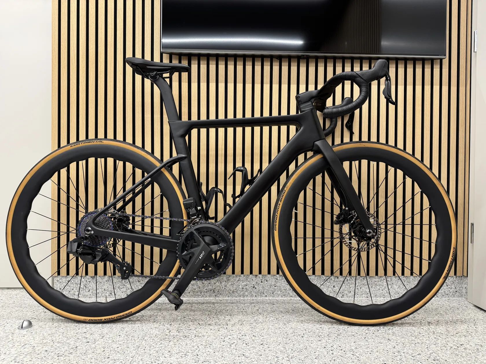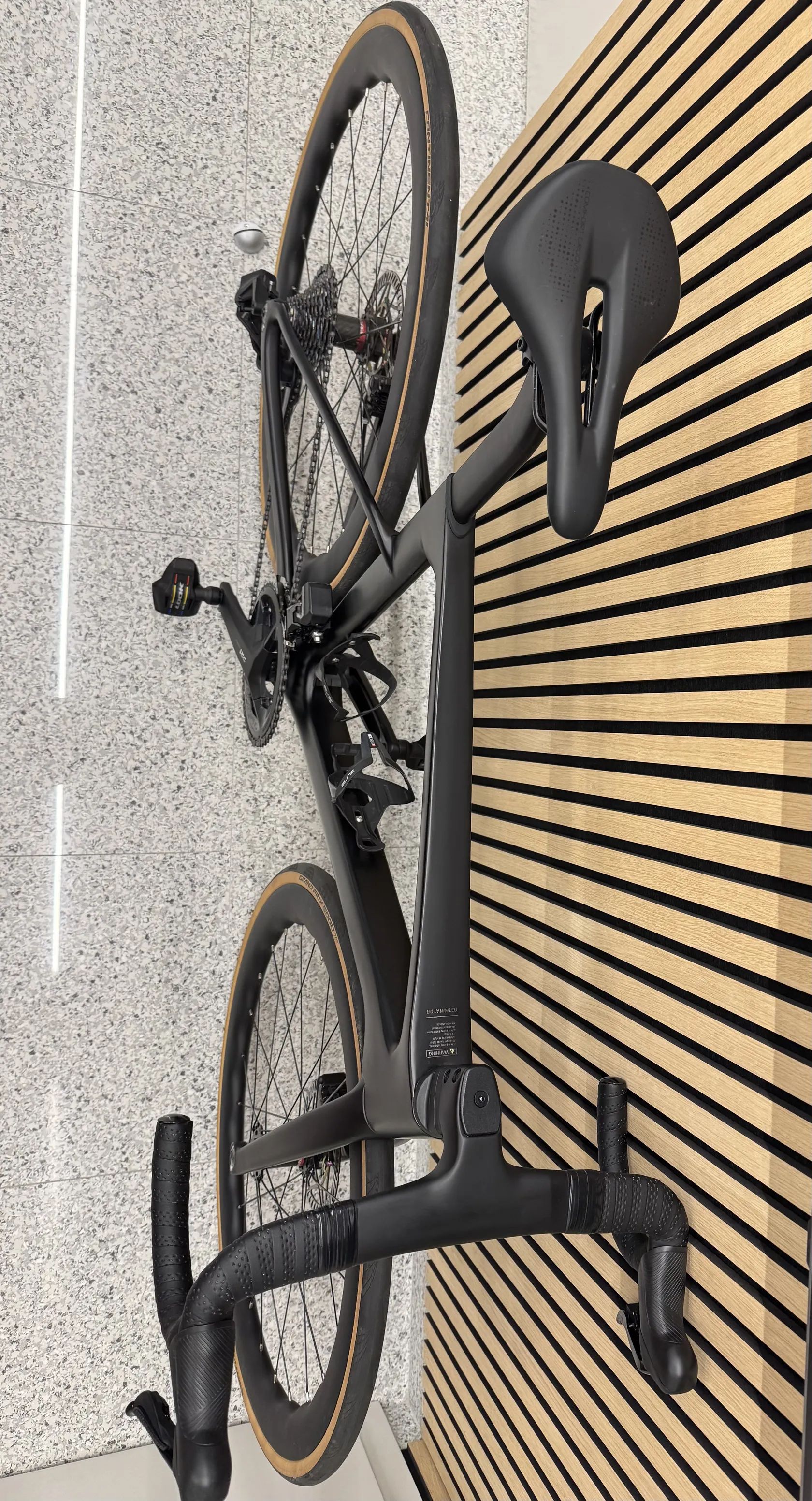Karbonová silnička Terminator, velikost M, celokarbonový rám včetně kokpitu, karbonové ráfky, kliky 175 mm, elektrická přehazovačka s 12 kazetou 11/32 + přesmykač 50/34, zánovní 2025. (Bez košíku a pedálů)