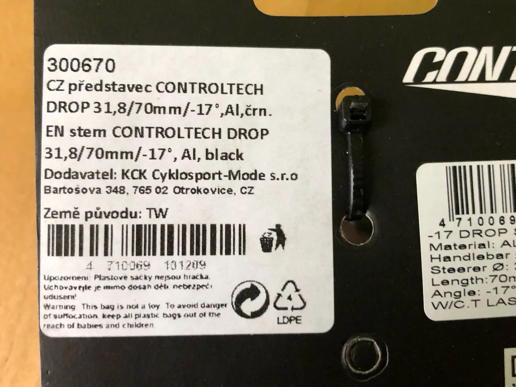 Představec CONTROLTECH DROP 31,8/-17°, 70mm