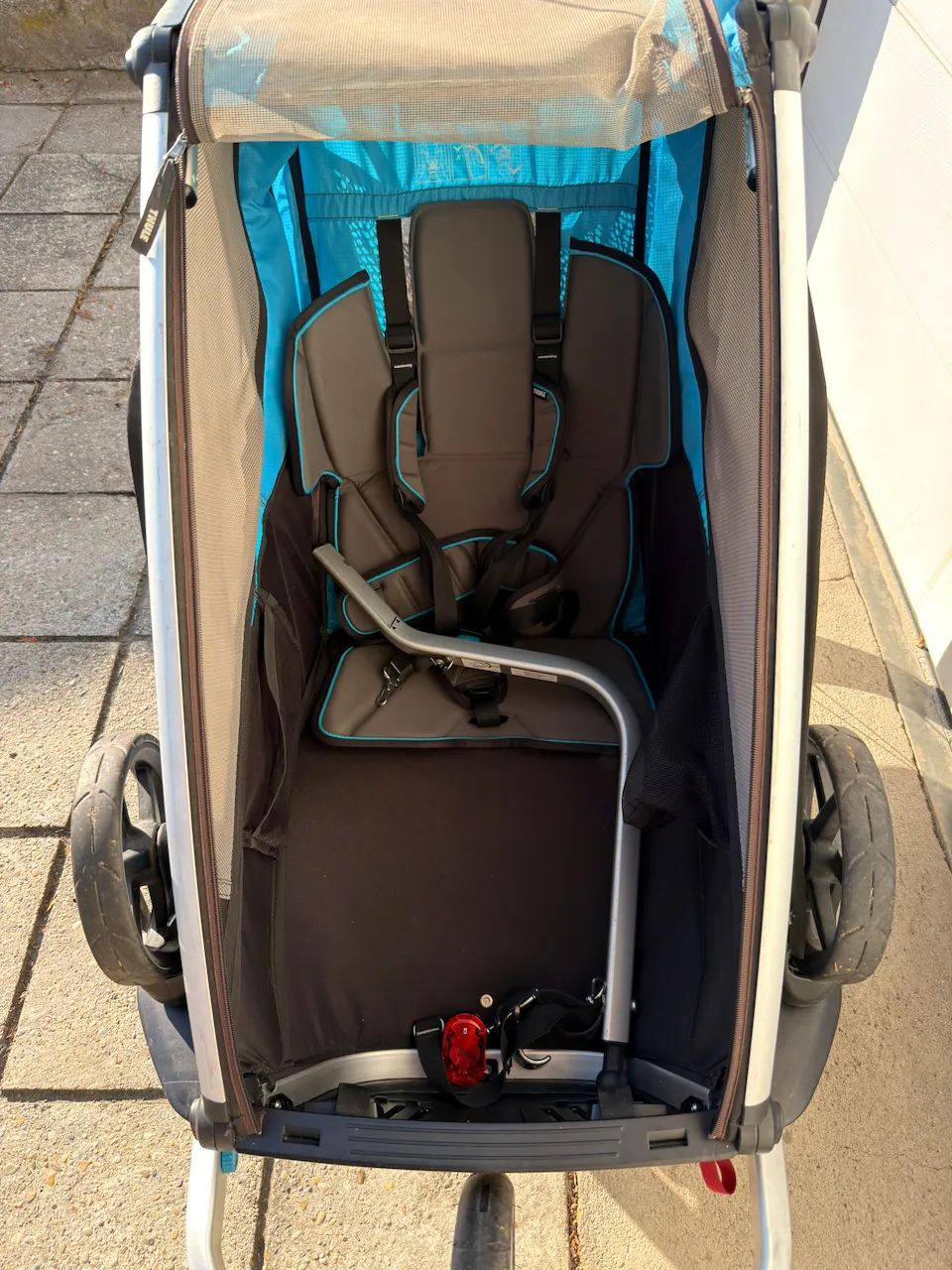 - jogger set - kočárková plastová kolečka = kočárkový set - cyklo set (cyklo oj, 1x cyklo spojka Thule, praporek) - kotoučová ruční brzda - větrací svorky a štěrbina - 1-místná sedačka - sluneční clona - stavitelné madlo - blikačka - 5ti bodové bezpečnostní pásy - přední igelitový kryt proti dešti - zadní úložný prostor - parkovací brzda pro obě kola (k zajištění vozíku při stání).