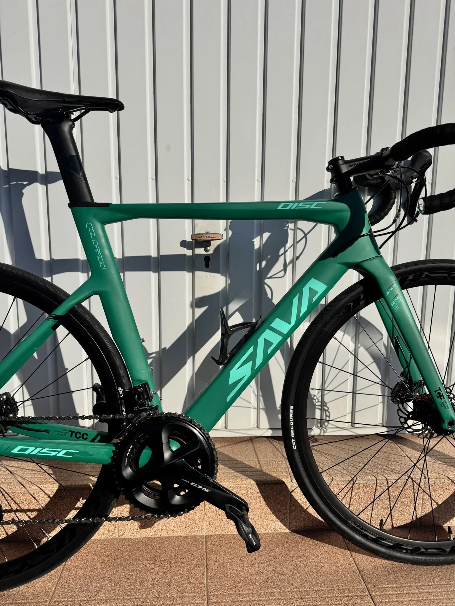 Prodám karbonovou silničku SAVA Colorado Disc – vel. 54 (M) Nabízím k prodeji moderní silniční kolo SAVA Colorado Disc v matné zeleno-tyrkysové barvě. Kolo je postaveno na lehkém a tuhém karbonovém rámu (T700) s aerodynamickým tvarováním a vnitřním vedením bowdenů (kabelů).
