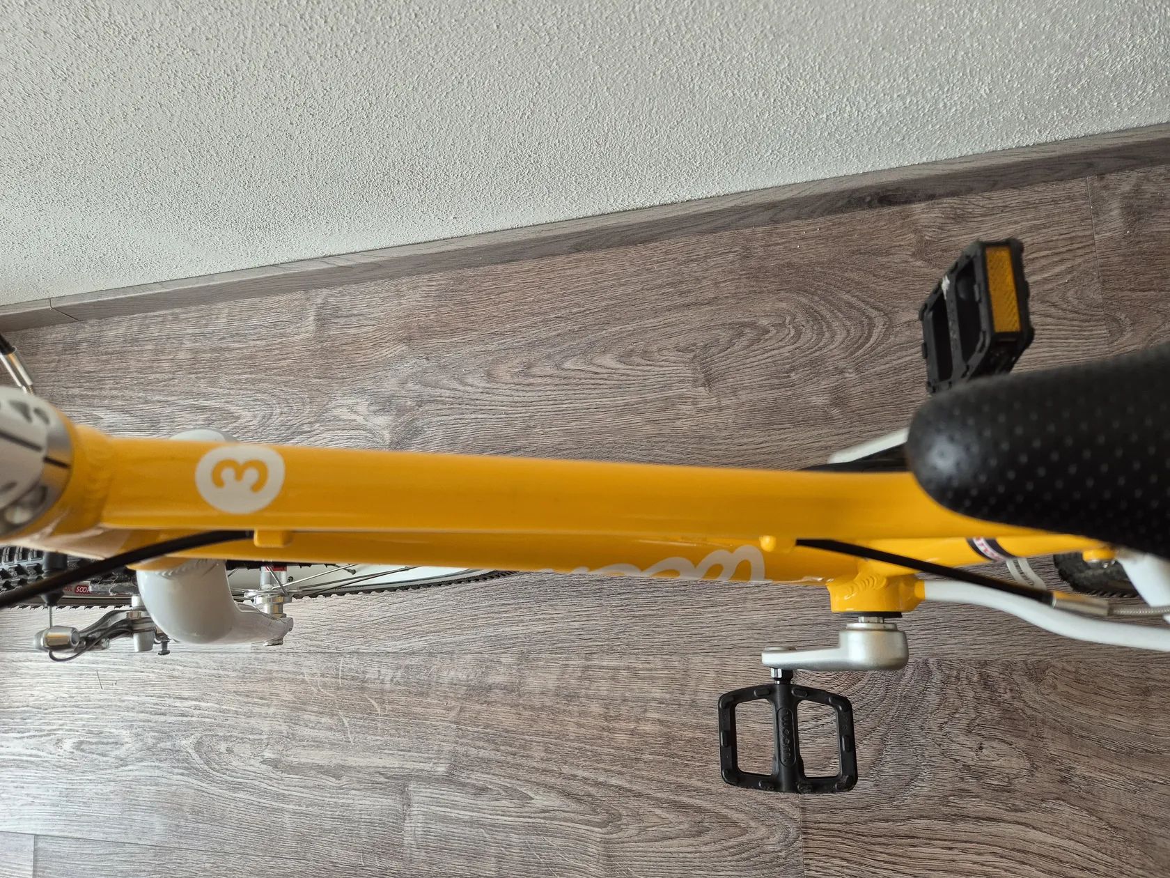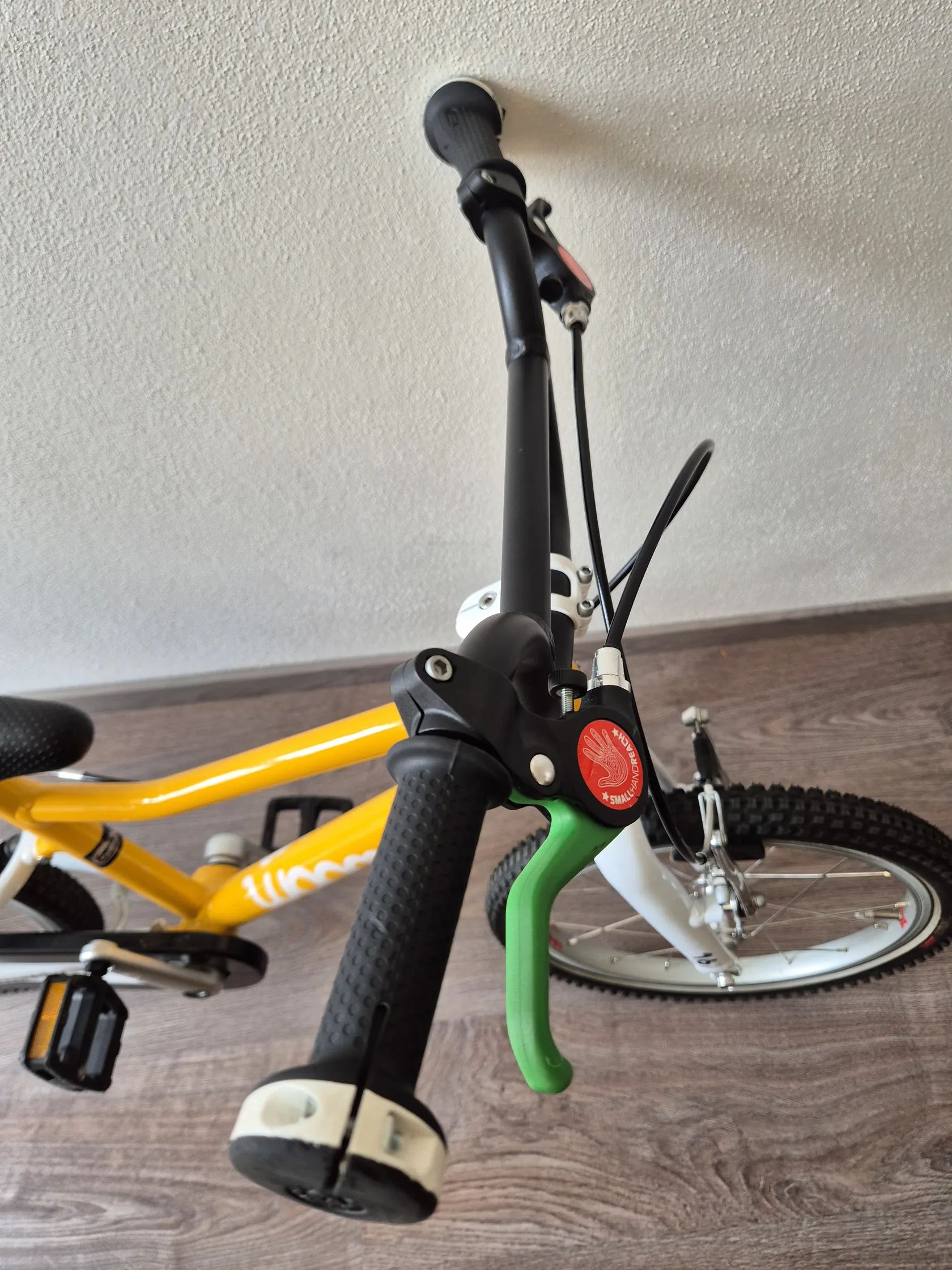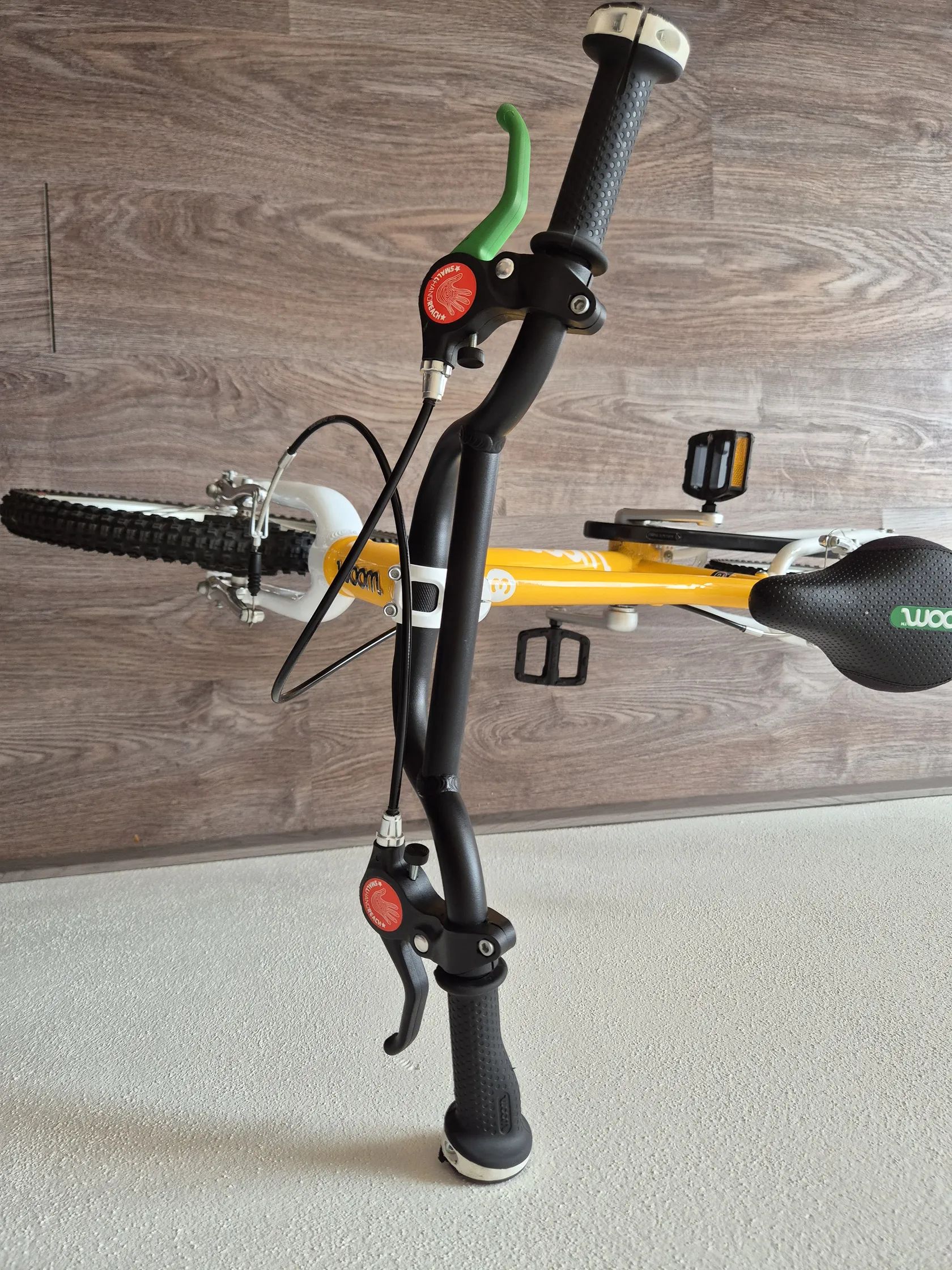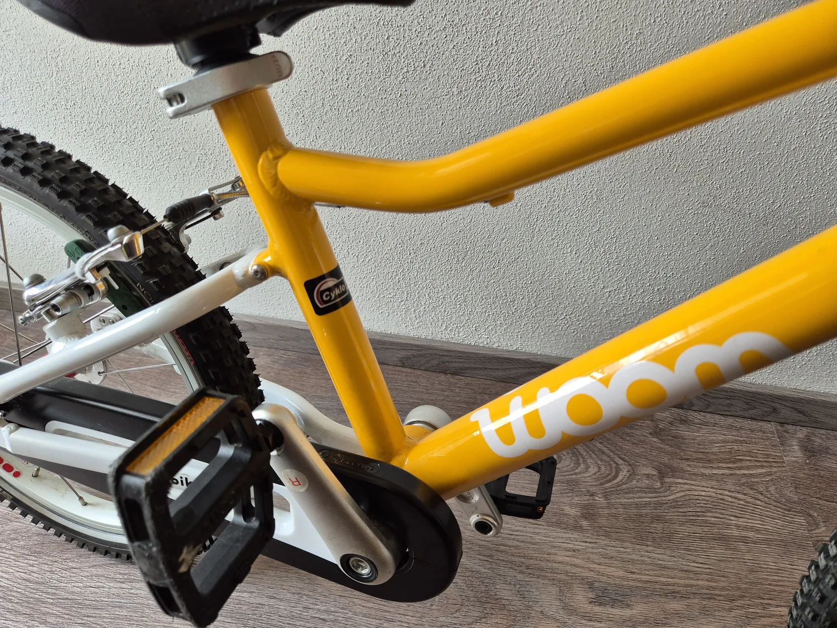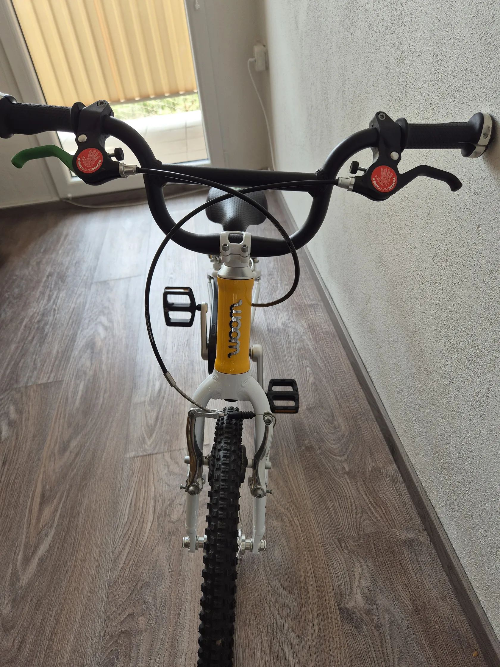 Dětské kolo "16" Kolo bylo využívané jednu sezonu, je v TOP stavu, nijak neponičené, lehce šlapky nepatrně sedřené, jinak nic výrazně viditelného. Lehce řidítka. Určitě super vidět kolo -Skvrnany. Dětské jízdní kolo Woom Original 3 váží pouhých 5,4 kg! Geometrie rámu nabízí přirozený vzpřímený posed jezdce a zajišťuje tak bezpečné a jisté ovládání. Kolo Woom 3 je osazeno komponenty speciálně navrženými pro dětské potřeby. Má barevně odlišenou zadní brzdu pro snadnou orientaci a rychlé osvojení jízdních dovedností, omezovač proti přetočení řídítek, ochranný kryt řetězu, kvalitní lehké pláště Kenda a možnost snadné úpravy výšky sedla pomocí rychloupínáku. Rám: lehký, vysoce kvalitně zpracovaný AA-6061 hliník, bezešvé trubky Vidlice: lehká, hliníková s variabilním omezením otpčení předního kola Hlavové složení: plně integrované, 1" se zapouzdřenými průmyslovými ložisky Představec: nový, hliníkový 40mm / +15 ° se zapuštěnými šrouby Řídítka: široká, ergonomická pro větší stabilitu ve stylu BMX, průměr 19 mm, šířka 500 mm Gripy: Woom Ergogrip - nejmenší svého druhu Pohon: lehké kované hliníkové kliky 80 mm, 25 x 15T s chranou řetězu Pedály: plastové Brzdy: mini V-brzdy s nastavitelnými pákami pro drobné ruce, měkké zadní a tvrdší přední brzdové botky pro účinné brždění, vysoce kvalitní bowdeny Jagwire pro snížení tření, barevné rozlišené páky brzd a brzdových botek pro snadné rozlišení přední a zadní brzdy Ráfky: ultralight hliníkové Soopa-Doopa-Hoops, hliníkové náboje se zapozdřenými ložisky Pláště: Kenda 16 x 1,5 s nízkým valivým odporem a reflexním páskem Sedlo: ergonomický design specifický pro daný věk Sedlovka: hliníková s označením minimálního a maximálního zasunutí Váha: 5,3 kg (bez pedálů) Nosnost: 60 kg