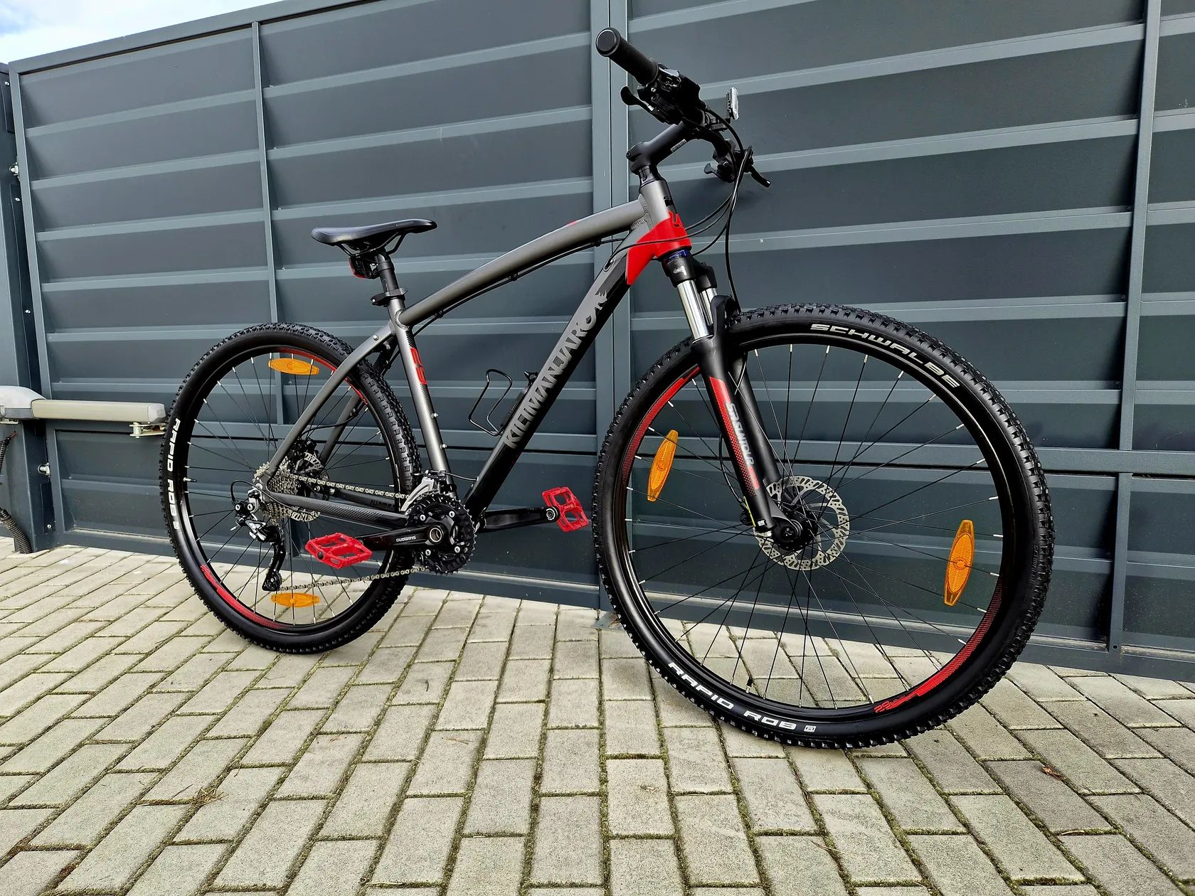 Horské hliníkové kolo Kilimanjaro 29" Kolo je v zánovním stavu bez vůlí a závad. Komplet seřízené a připravené pro nového majitele. Najeto pouze do 50km Hliníkový rám velikost 19" Ráfky velikost 29" Přehazovačka Deore XT Páky řazení Deore Přesmykač Deore 30 převodů (3x10) Hydraulické kotoučové brzdy Tektro Odpružená vidlice s nastavením tuhosti a zámkem z korunky SR XCT Kliky Shimano dutá osa Střed dutá osa Deore Pedály Force Alu Držák na láhev Vhodné pro postavu cca 155-185cm Při prodeji vystavím doklad o koupi. Lze poslat poštou při platbě převodem na účet. Prohlídka možná kdykoliv po dohodě. Záruka na původ zboží. Jirny (Praha-Východ)