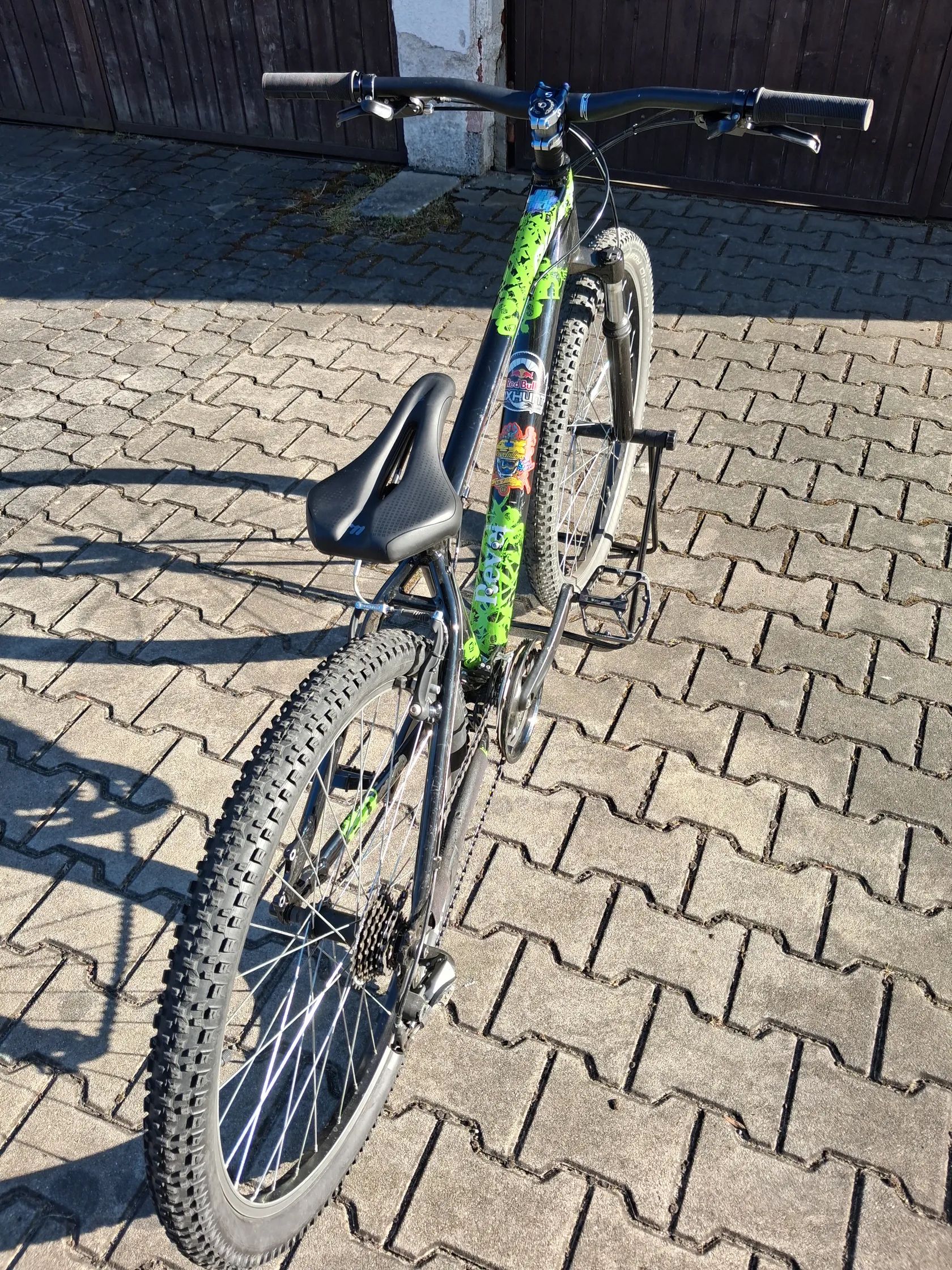 Komfort: Zcela nové ergonomické sedlo. Pohon a brzdy: Nová lanka a bowdeny (přehazovačka i brzdy) – vše chodí hladce a přesně. Pedály: Nové platformové pedály s dobrou přilnavostí. Výbava: Osazení Shimano 3x7, odpružená vidlice, kvalitní pláště Schwalbe s pěkným vzorkem. Kolo je vyčištěné, seřízené a připravené na sezónu bez dalších investic. Stačí nasednout a jet.