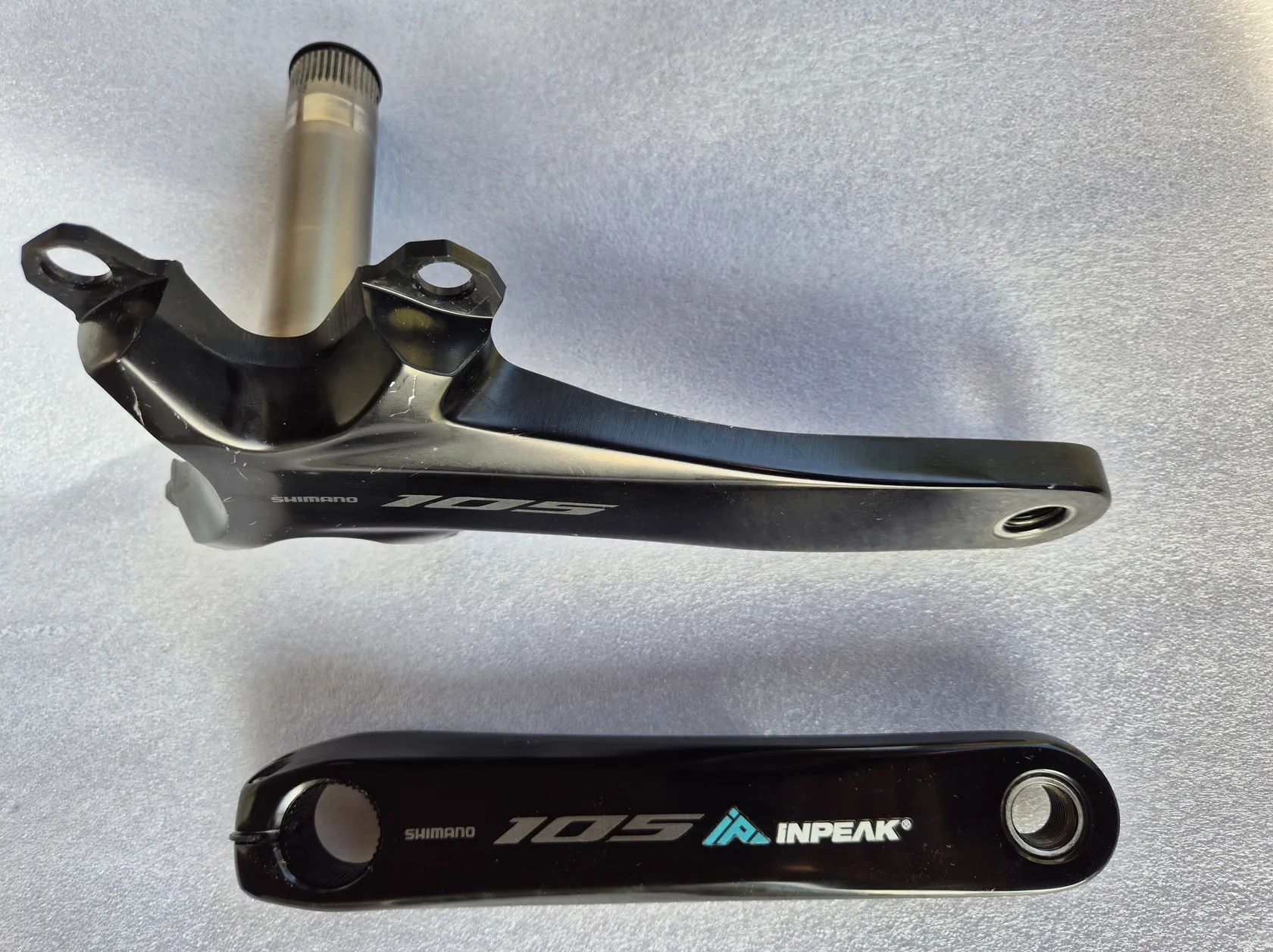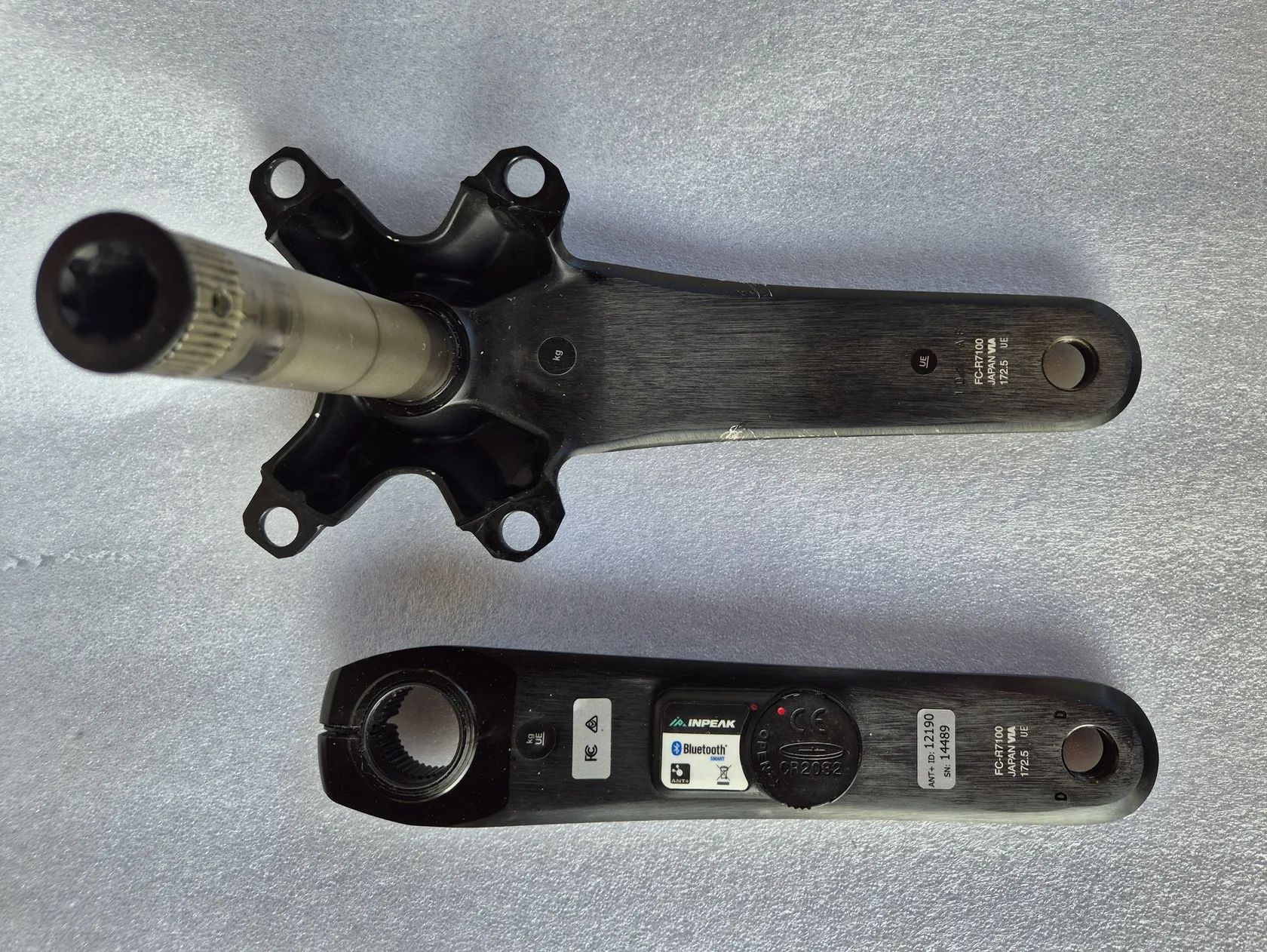 Prodám použité kliky Shimano 105 R7100 172,5 mm bez převodníků s jednostranným wattmetrem InPeak.na levé klice..