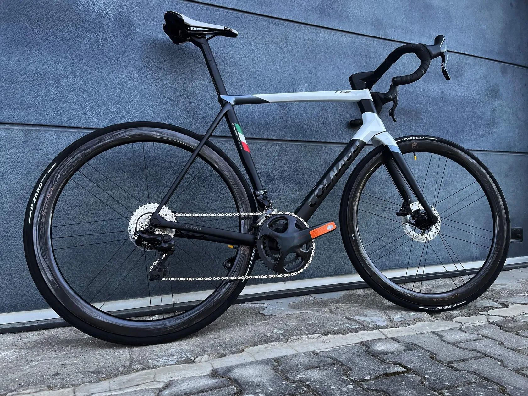 VÝBAVA: - rámová sada Colnago C68 Disc, velikost 550 (u Colnago cca L-XL) - Campagnolo Super Record EPS 2x12 - kokpit Colnago CC.01 Carbon - zapletená karbonová kola Campagnolo Bora Ultra 45 - pláště Pirelli PZero 28mm - sedlo Prologo Kappa ladící s kolem
