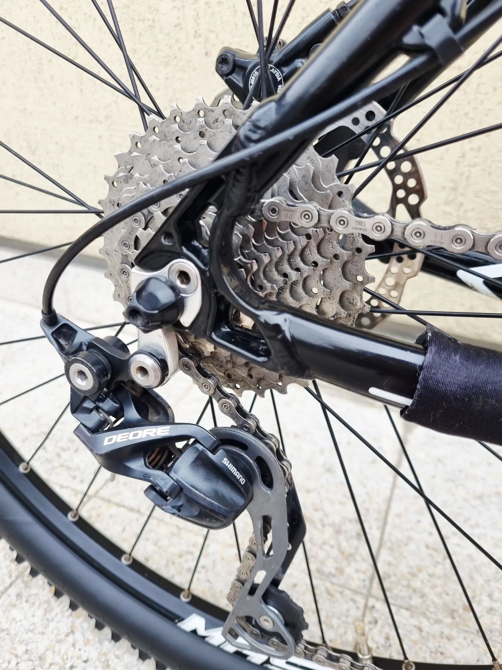 Hliníkový rám velikosti L / 19“ Kola 27,5" Pláště Schwalbe Smart SAM 2.25 Vzduchová vidlice Raidon s nastavením tuhosti a možností uzamknutí z řidítek Přehazovačka Shimano Deore Přesmykač Shimano Deore Páky řazení Shimano Deore 30 převodů (3x10) Hydraulické kotoučové brzdy Shimano Deore Nové sedlo Nové gripy