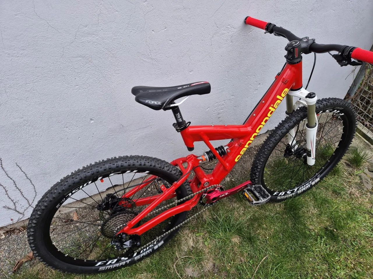 Cannondale Super-V – starší, ale kvalitní celoodpružený hliníkový rám s typicky výraznou „V“ konstrukcí